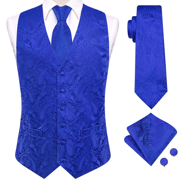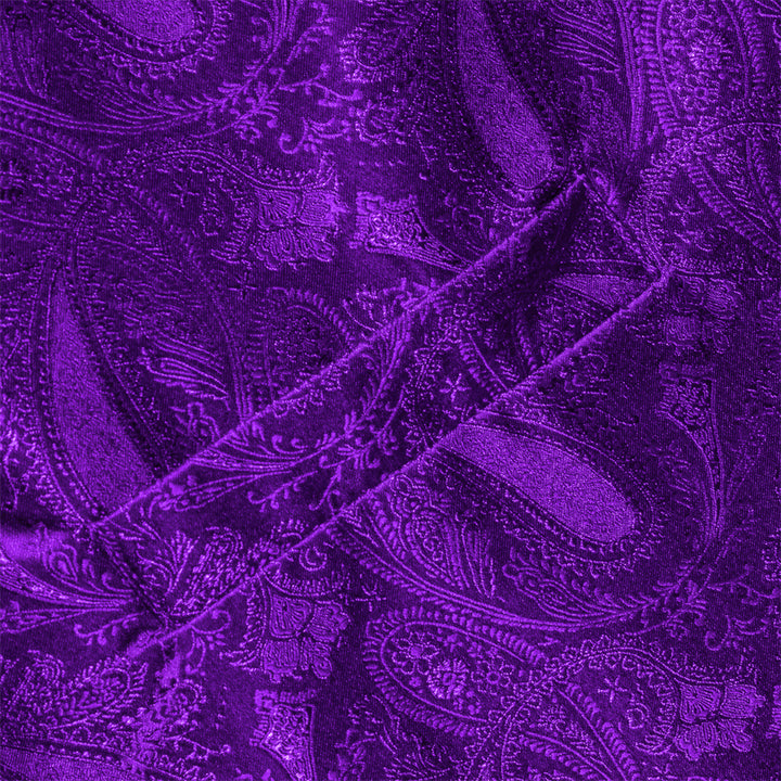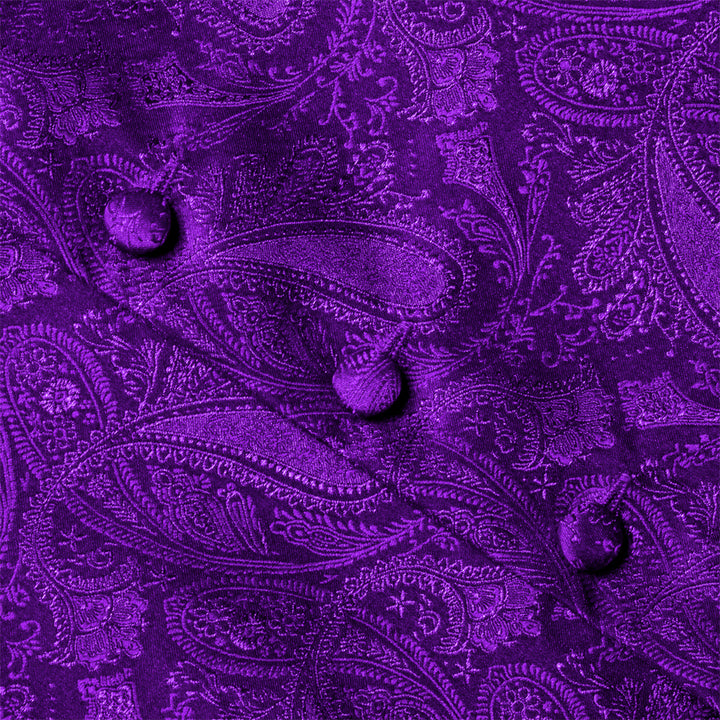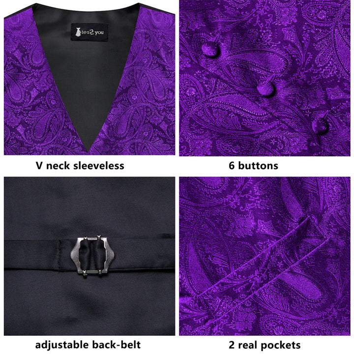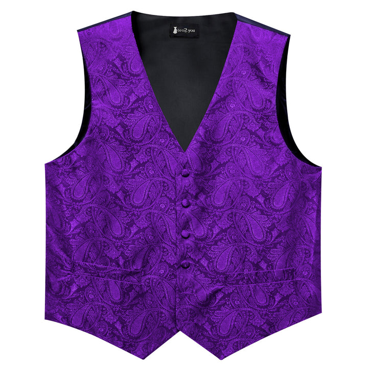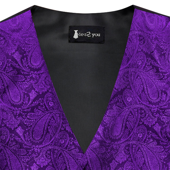 Ties2you Purple Paisley Pattern V-Neck Silk Vest Necktie Set