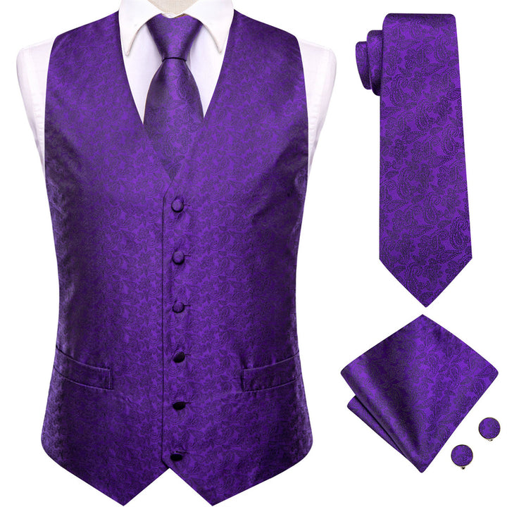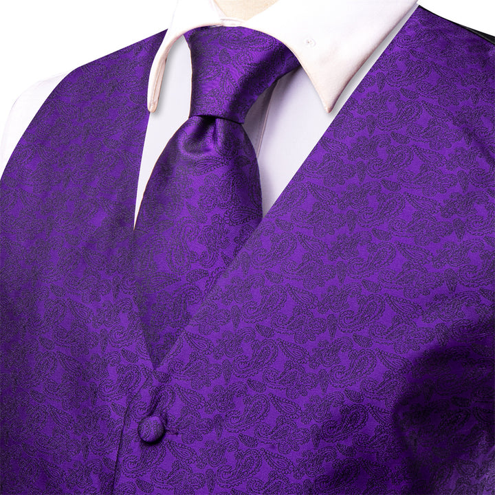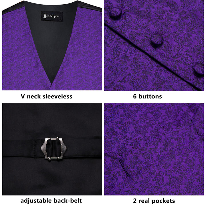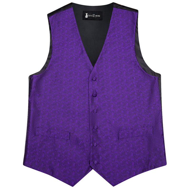 Ties2you Purple Paisley Pattern V-Neck Silk Vest Necktie Set