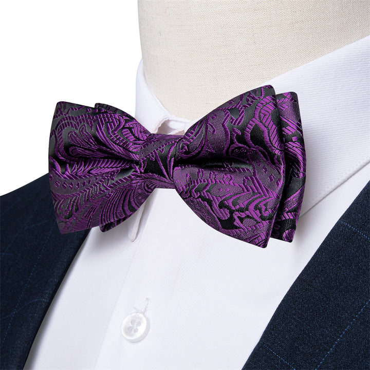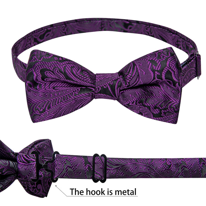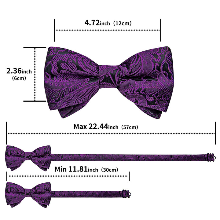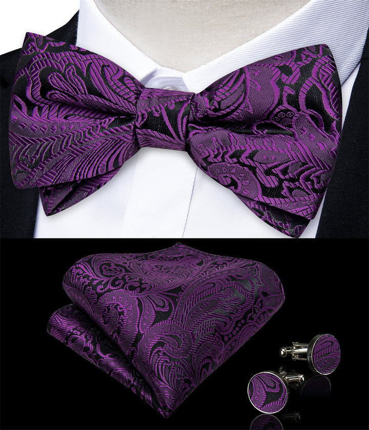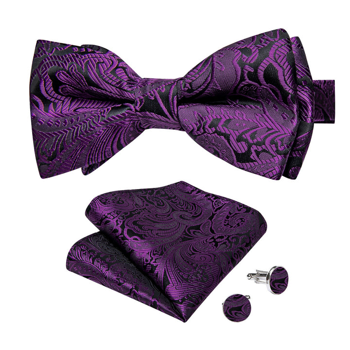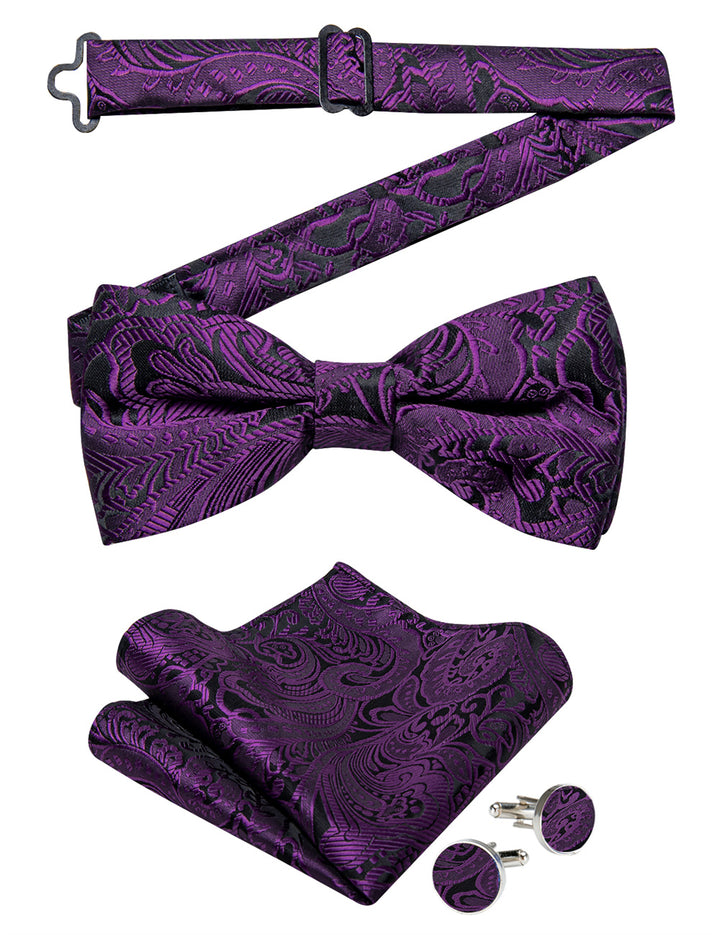 Ties2you Purple Paisley Pre-tied Bow Tie Hanky Cufflinks Set