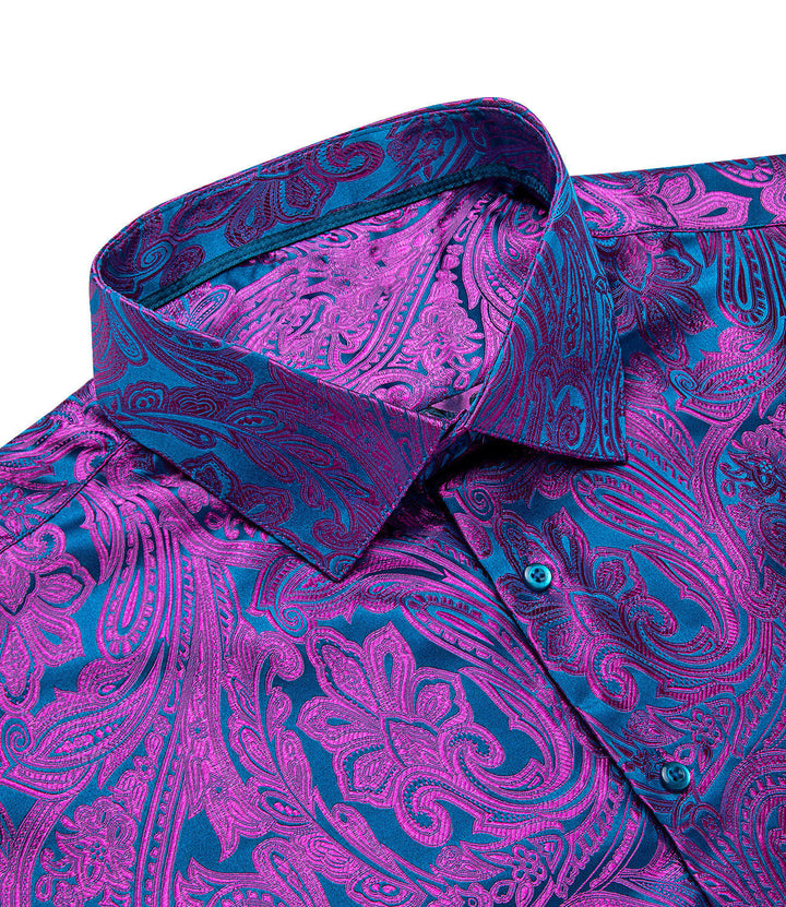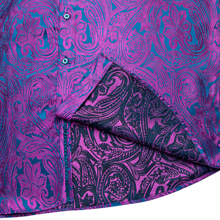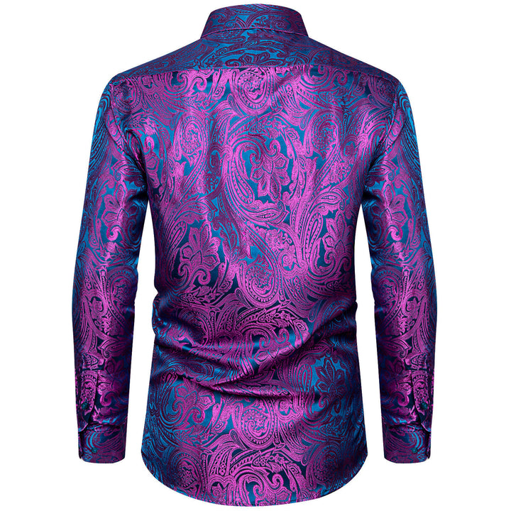 Ties2you Purple Shirt Casual Paisley Long Sleeve Silk Men's Shirt For Party