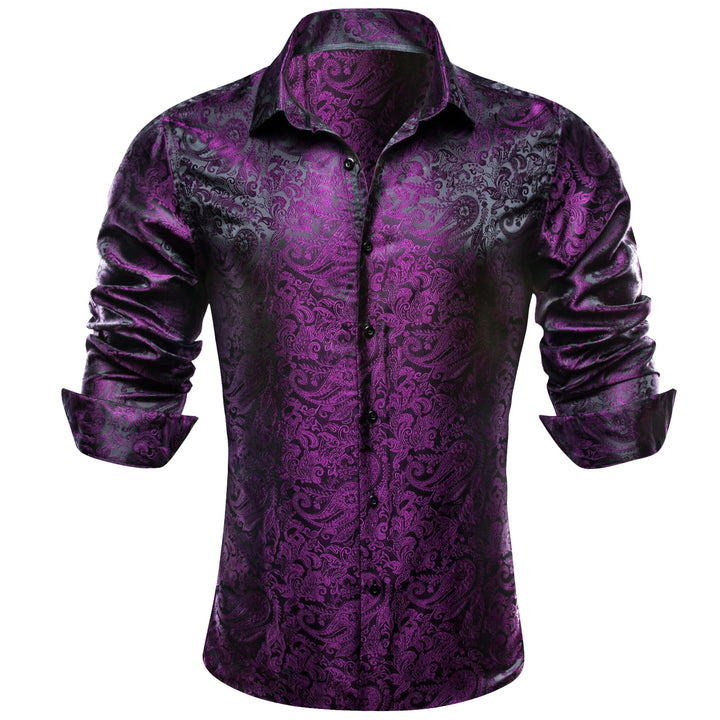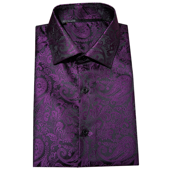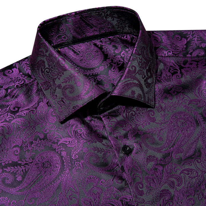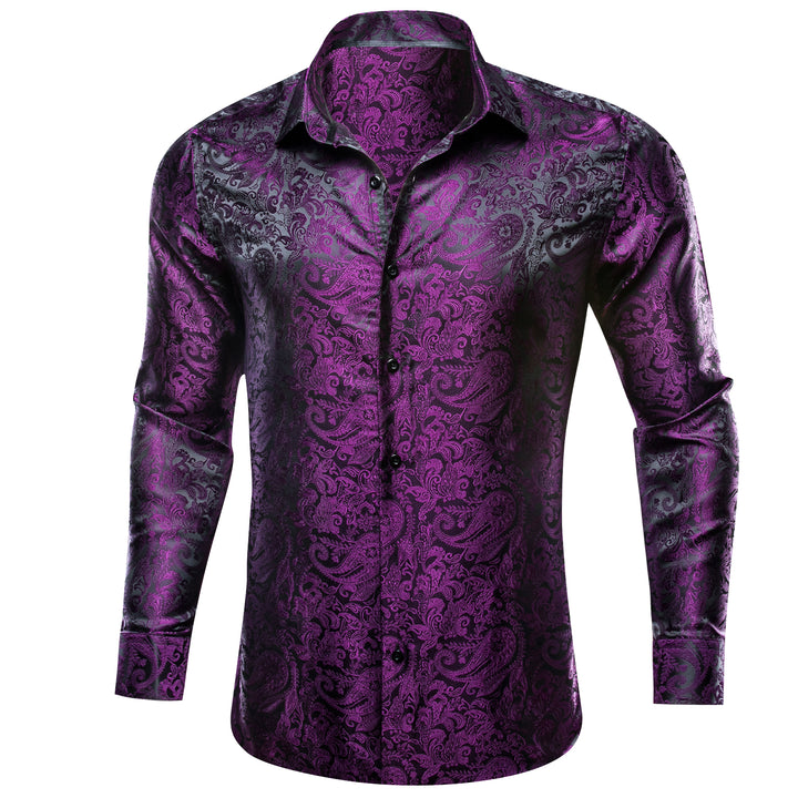Ties2you Purple Shirt Shining Casual Paisley Silk Men's Shirt For Party