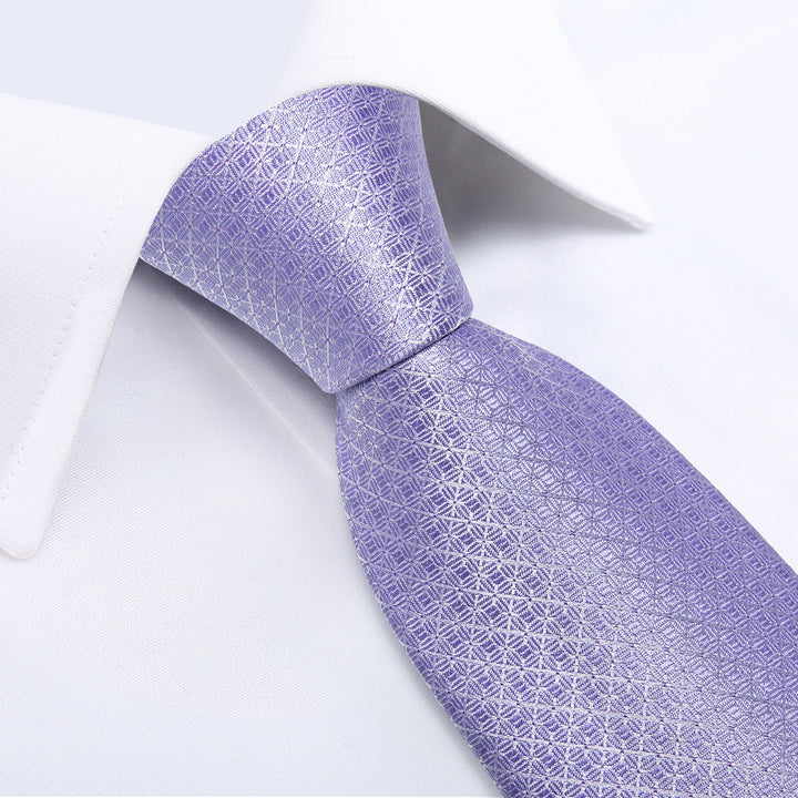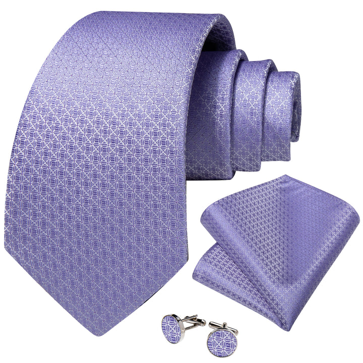 Ties2you Lavender Wedding Tie Silk Plaid Necktie Pocket Square Cufflinks Set
