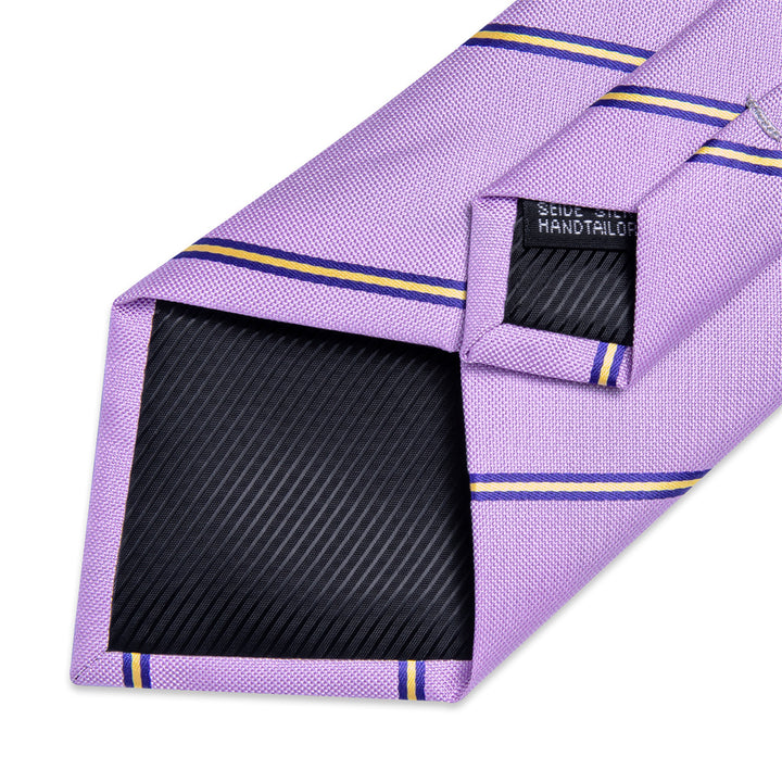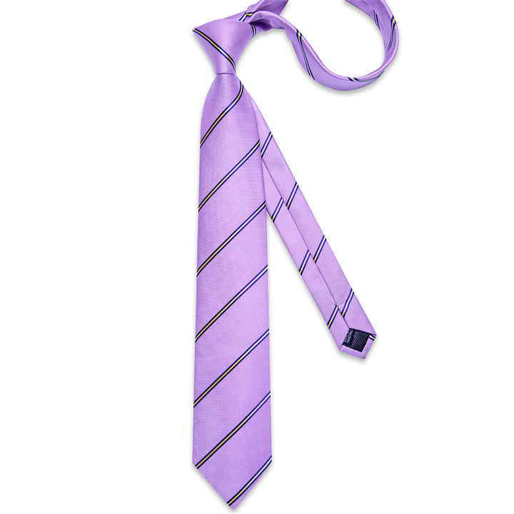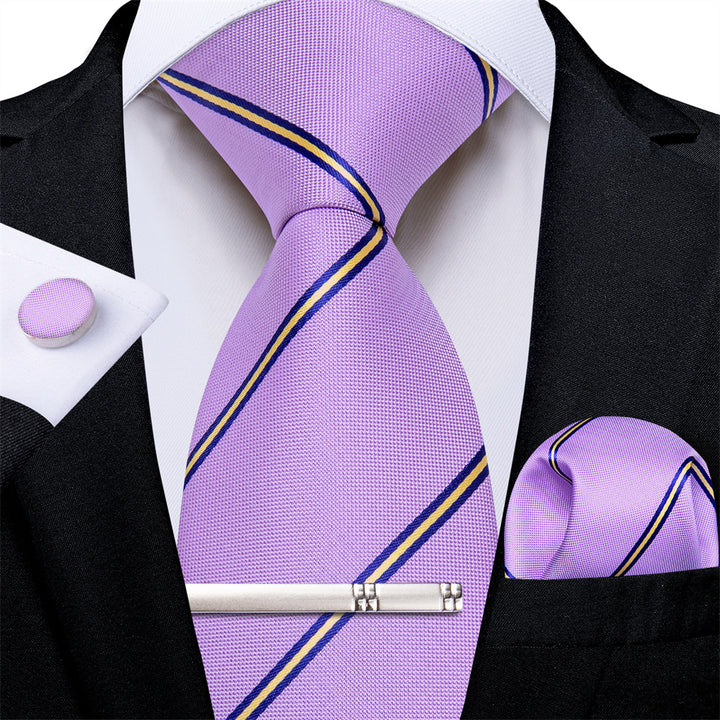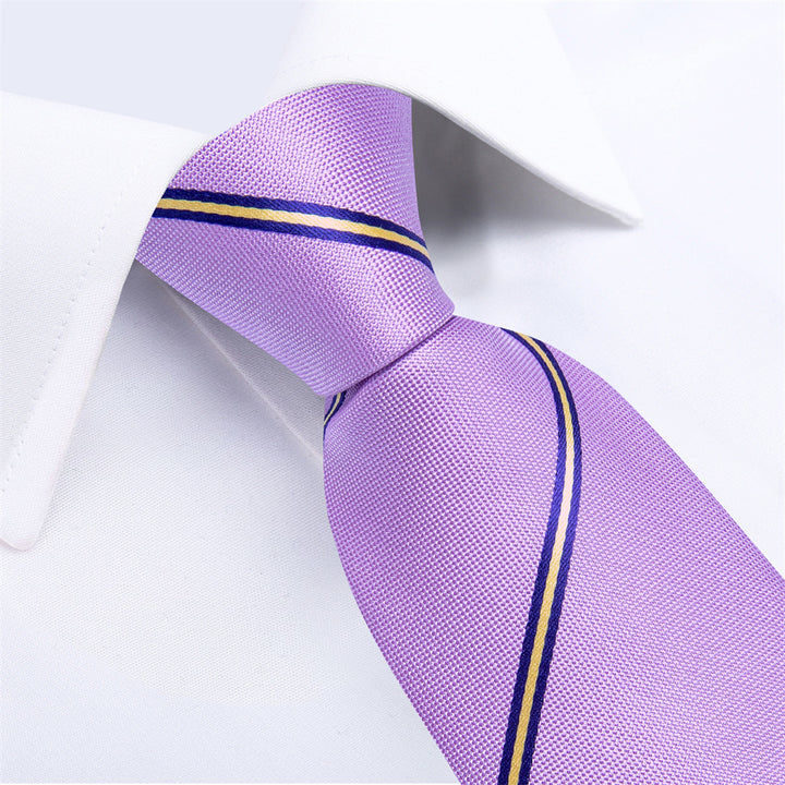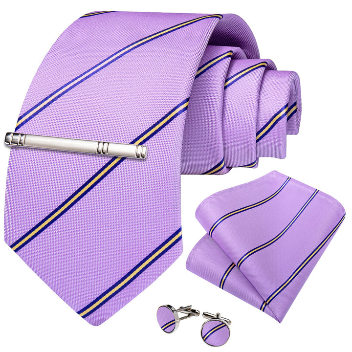 Ties2you Purple Tie With Blue Yellow Line Striped Necktie Pocket Square Cufflinks Set