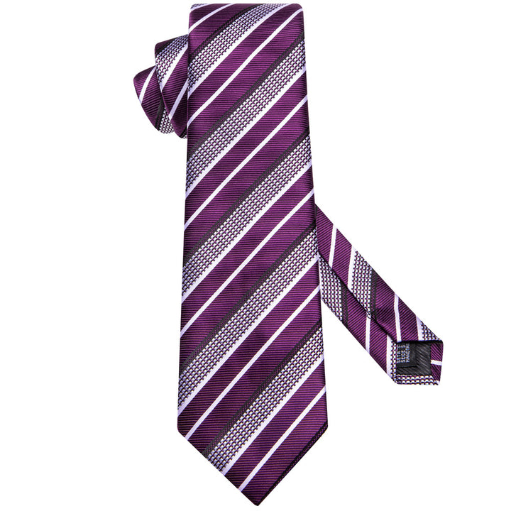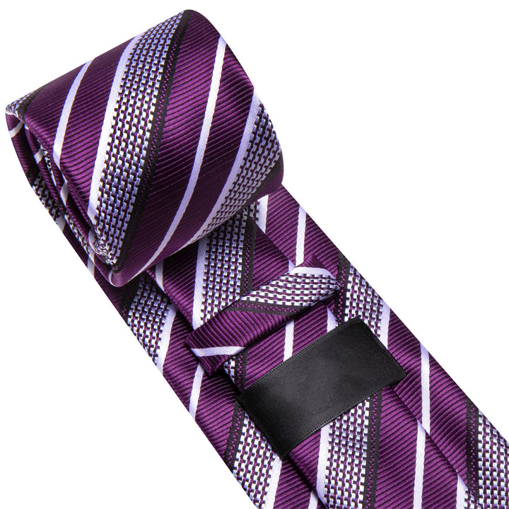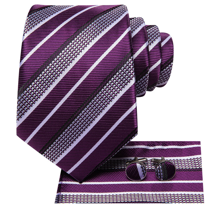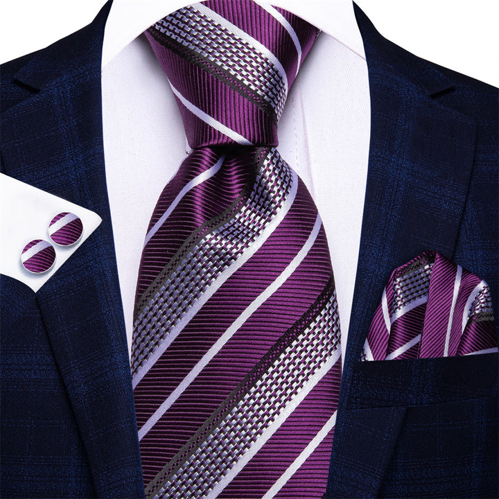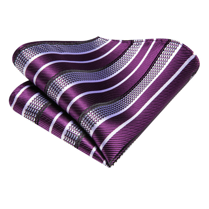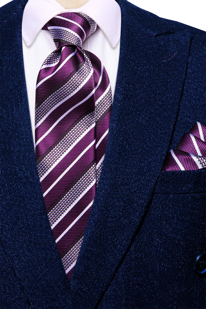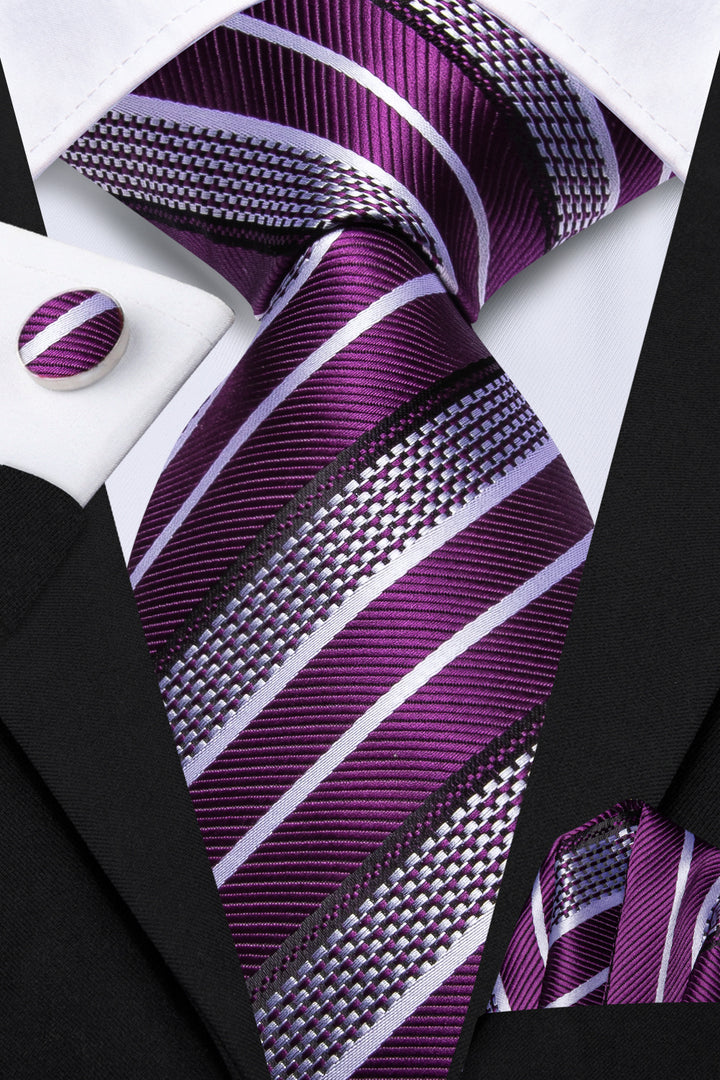 Ties2you Purple White Striped Men's Necktie Hanky Cufflinks Set