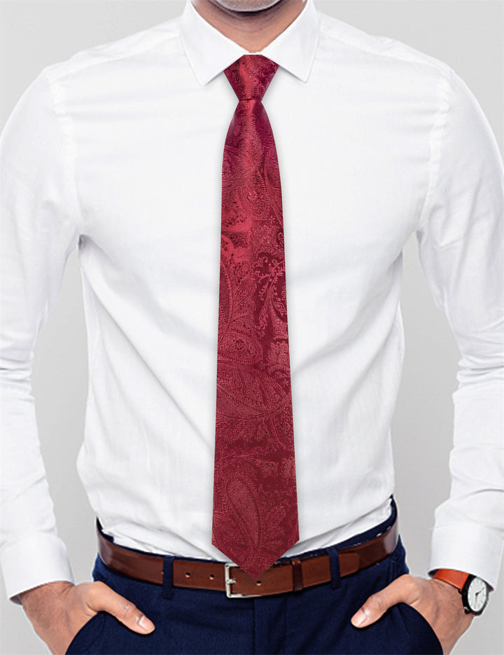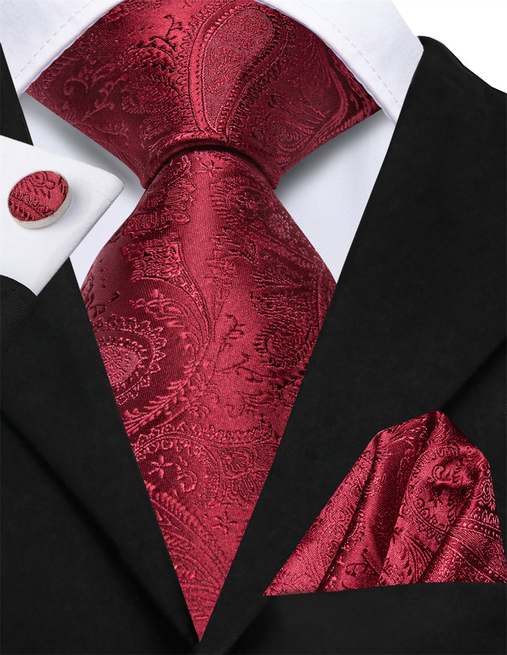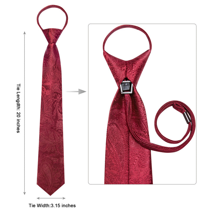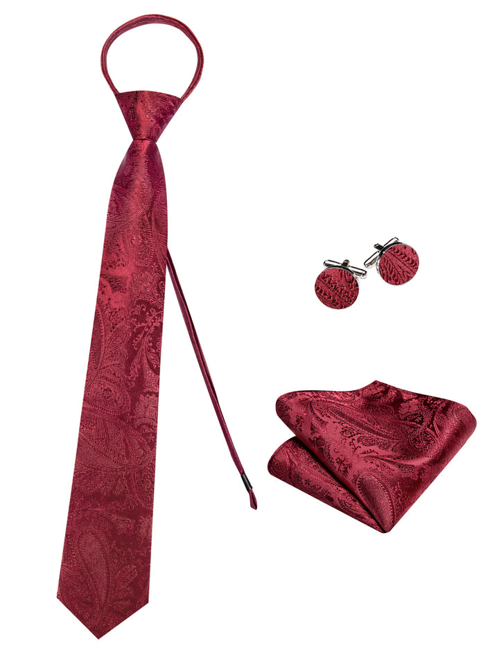 Ties2you Red Paisley Lazy Mens Business Easy-pull Silk Tie Pocket Square Cufflinks Set
