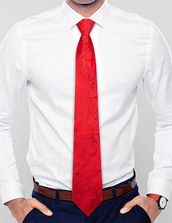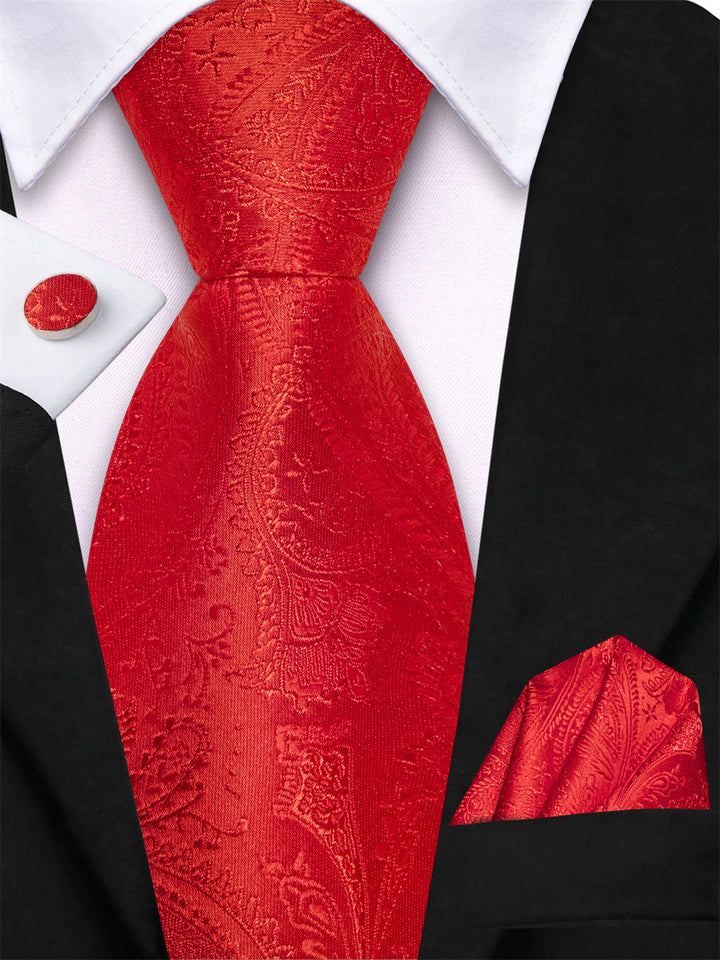 Ties2you Red Paisley Lazy Men's Easy-pull Silk Tie Pocket Square Cufflinks Set