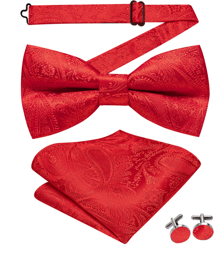 Ties2you Red Paisley Tuxedo Bowtie Pre-tied Formal Bow Tie Pocket Square Cufflinks Set