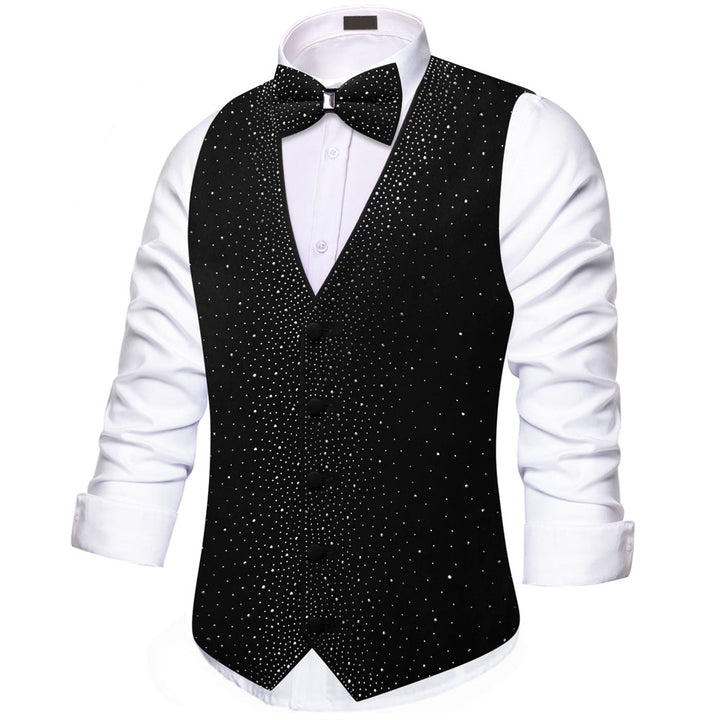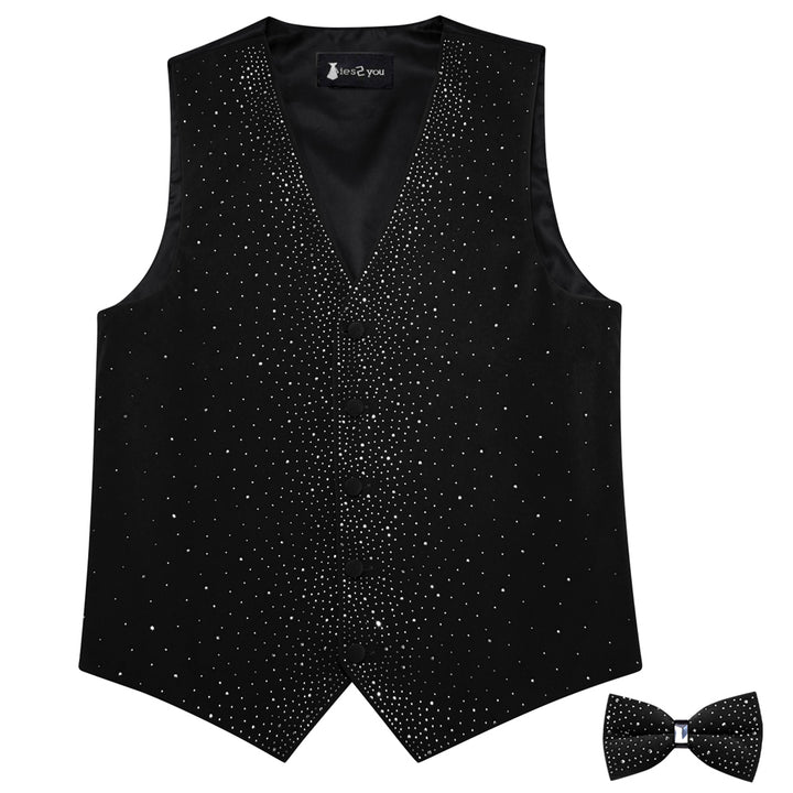 Ties2you Rhinestone Black Dress Vest Mens Solid Velvet V-Neck Suit Vest Bowtie Set