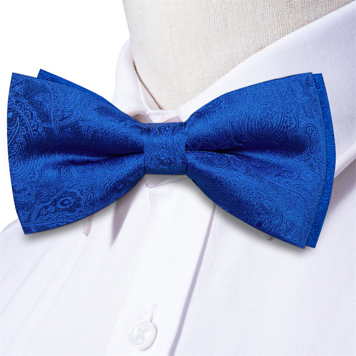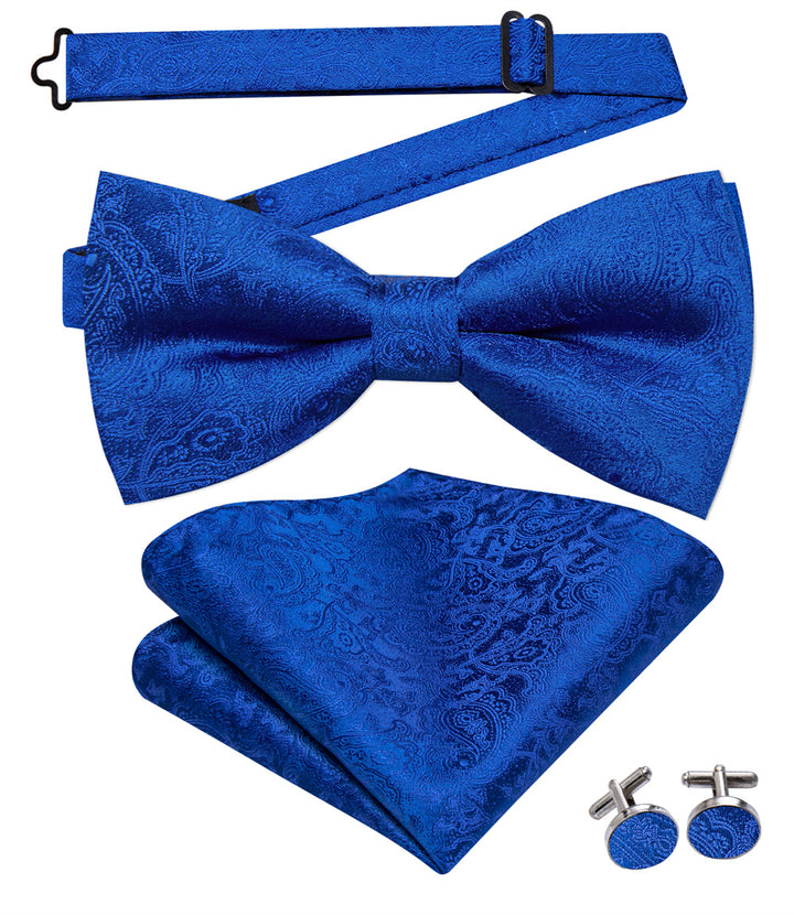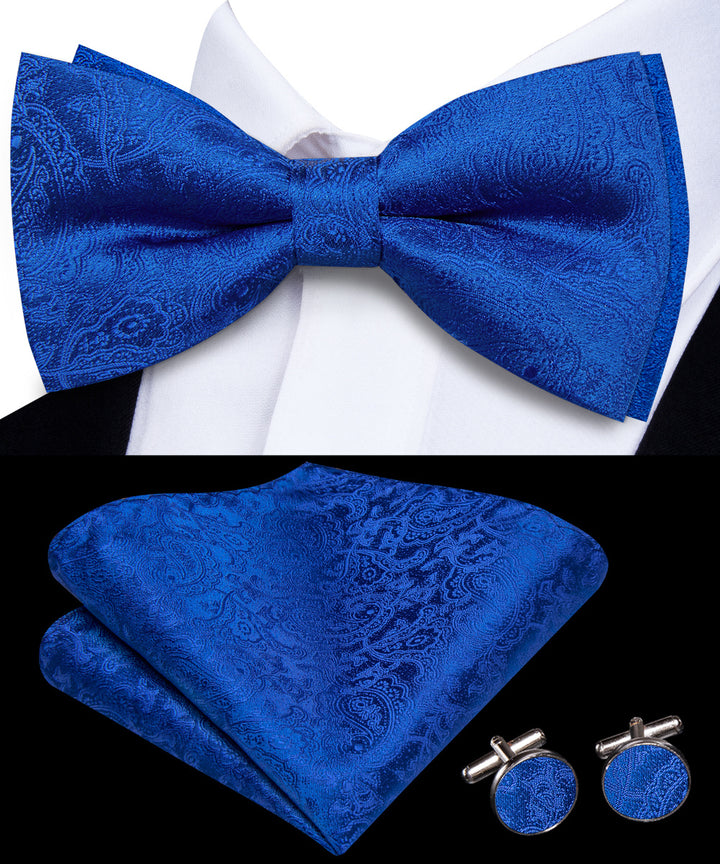 Ties2you Royal Blue Floral Tuxedo Bowtie Pre-tied Bow Tie Handkerchief Cufflinks Set