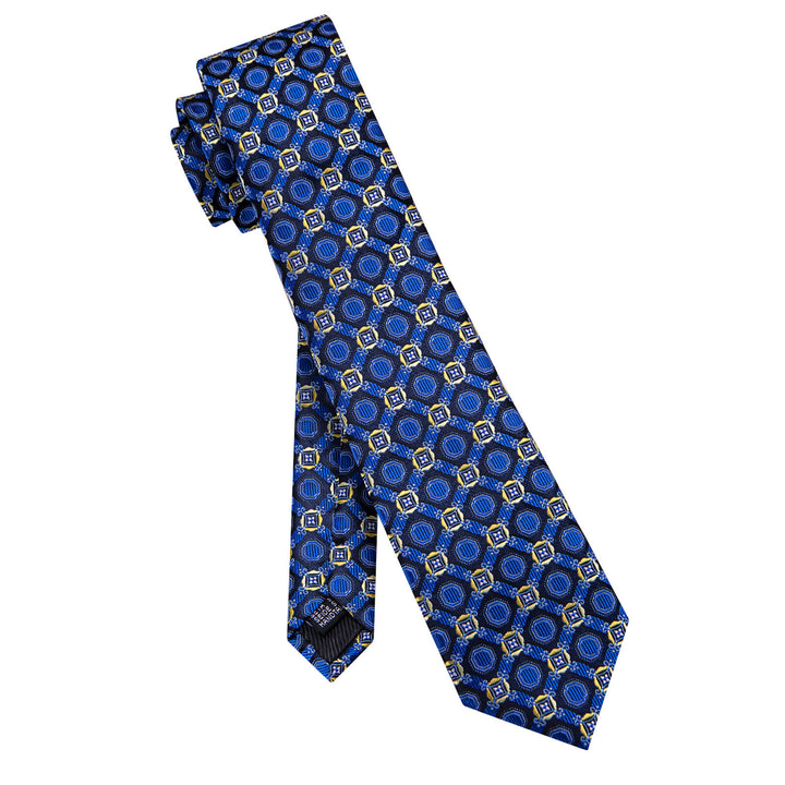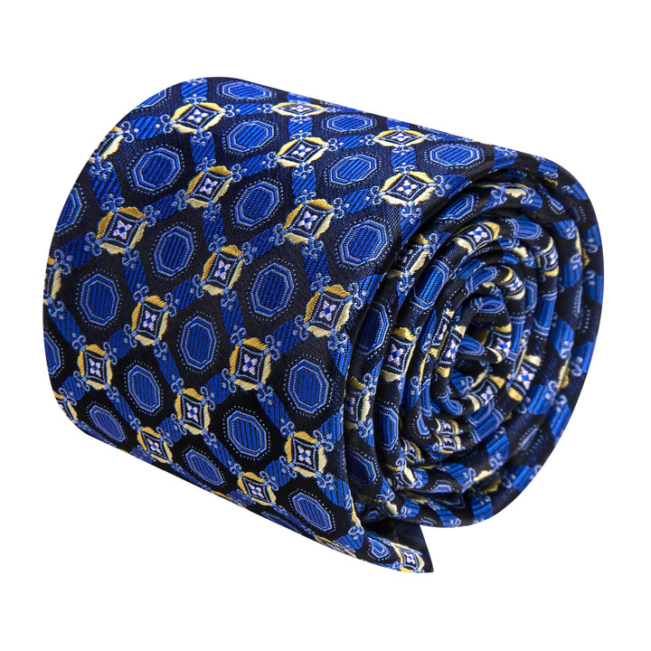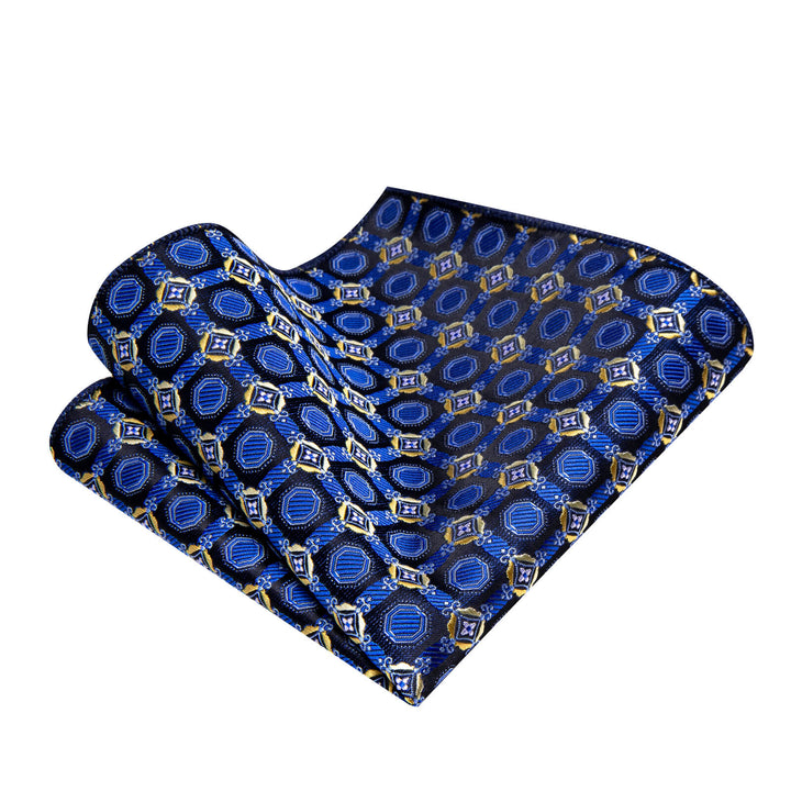 Ties2you Royal Blue Geometric Necktie Pocket Square Cufflinks Set