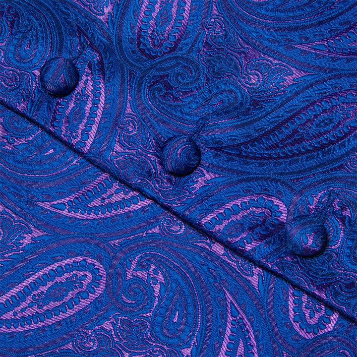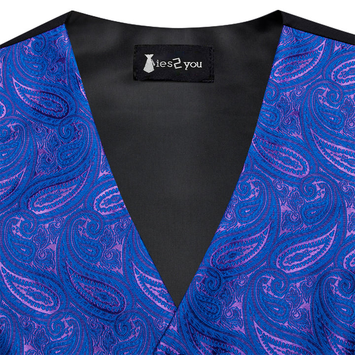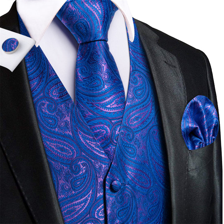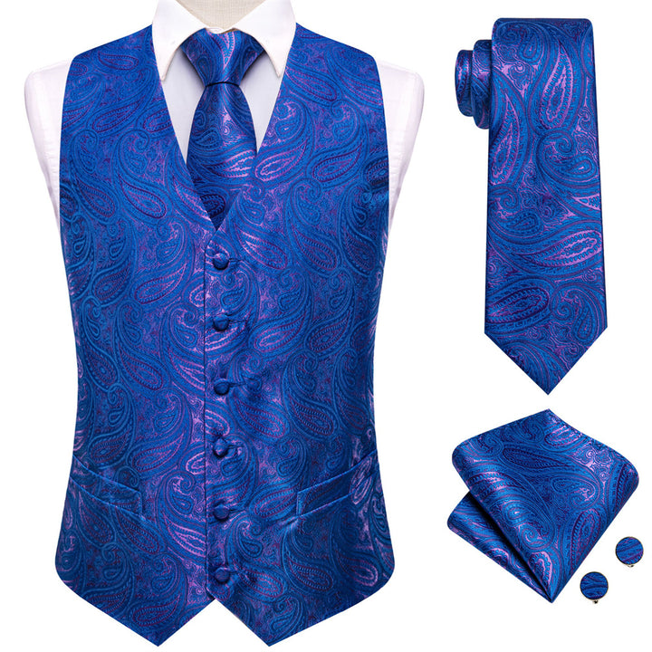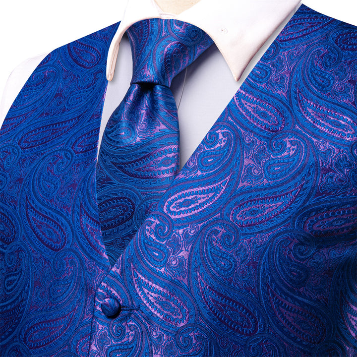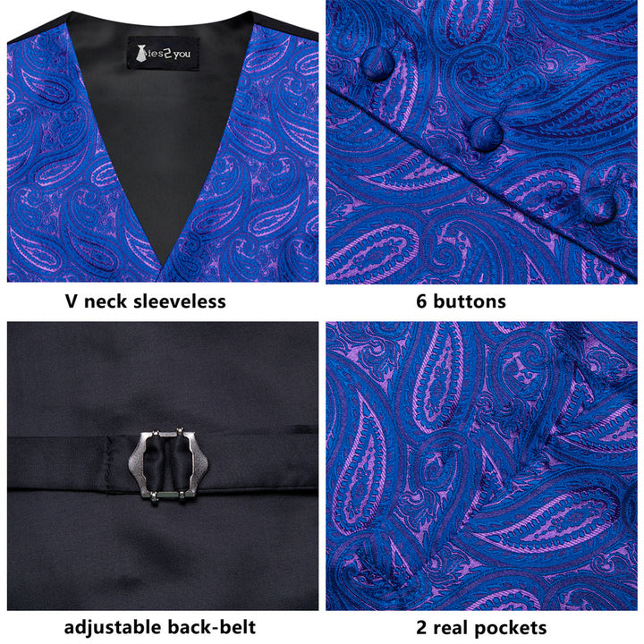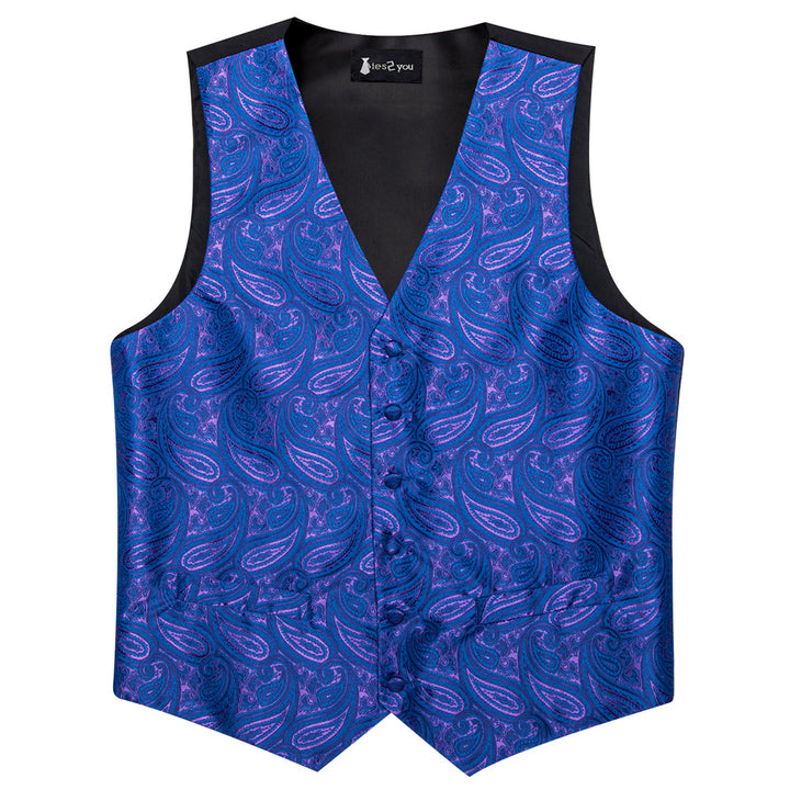 Ties2you Royal Blue Paisley Pattern V-Neck Silk Vest Necktie Set