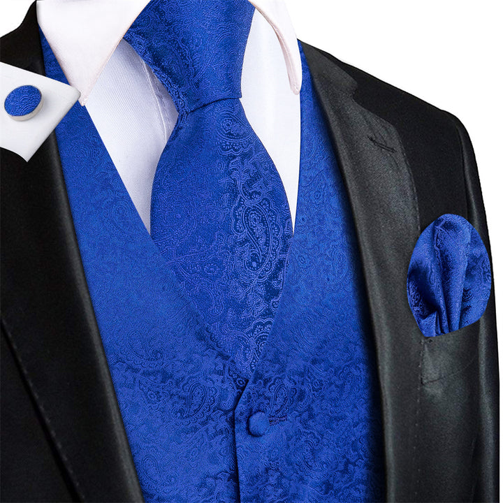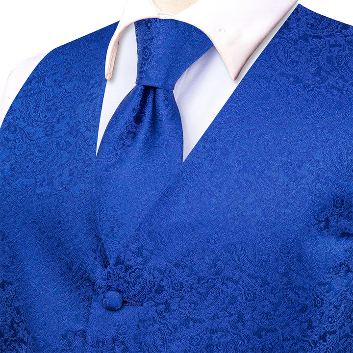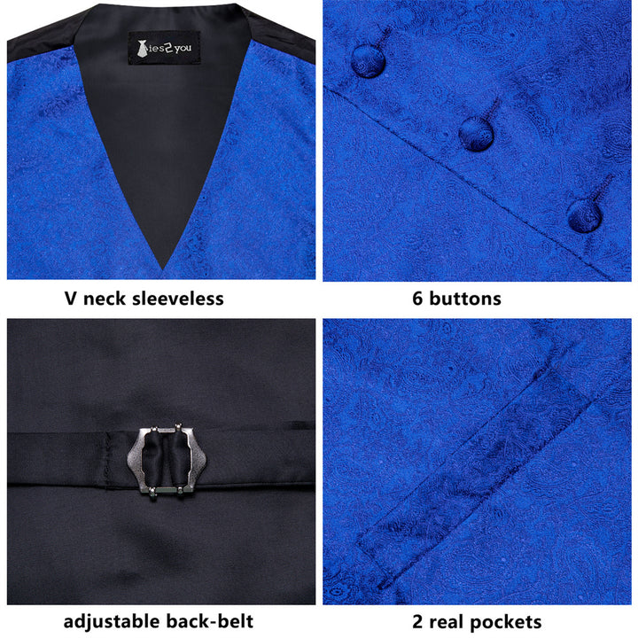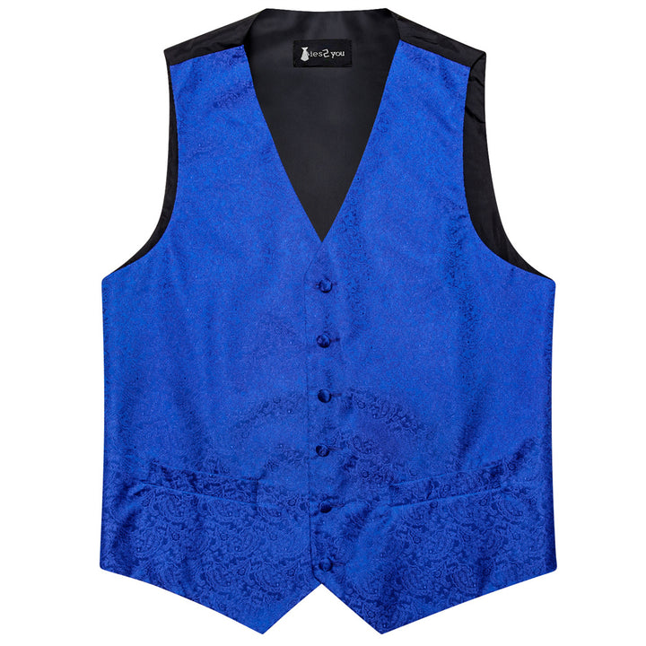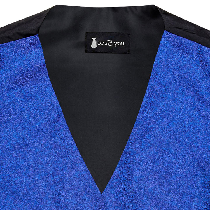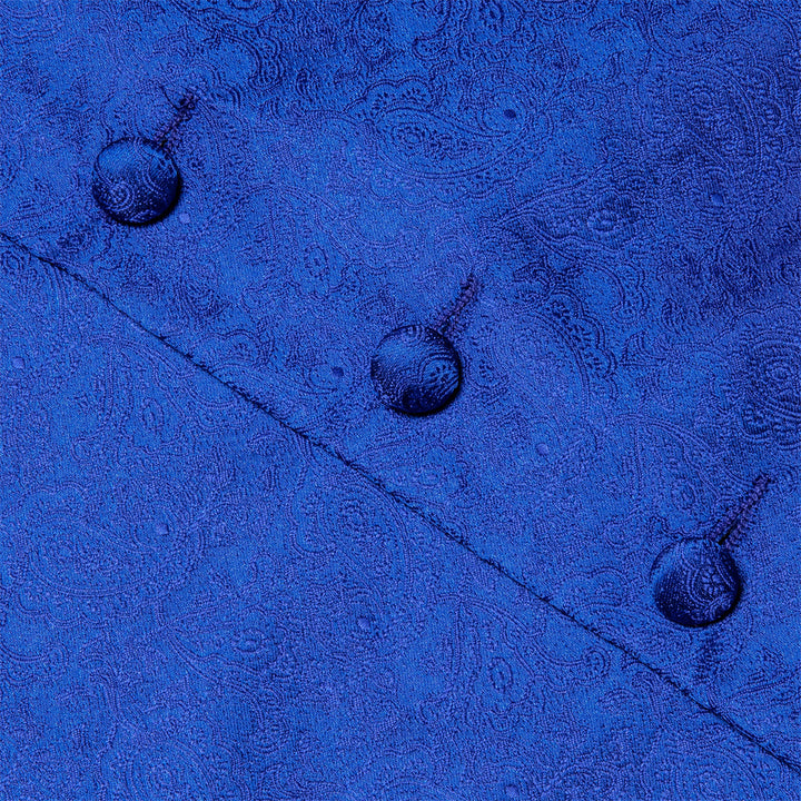 Ties2you Royal Blue Paisley Pattern V-Neck Silk Vest Necktie Set