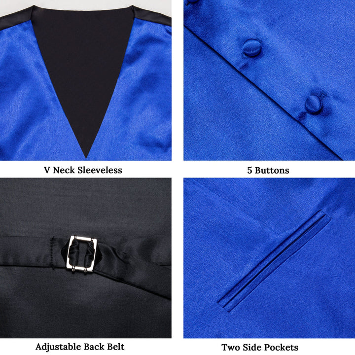 Ties2you Royal Blue Suit Waistcoat Solid Casual Dress Vest Tie Hanky Cufflinks Set