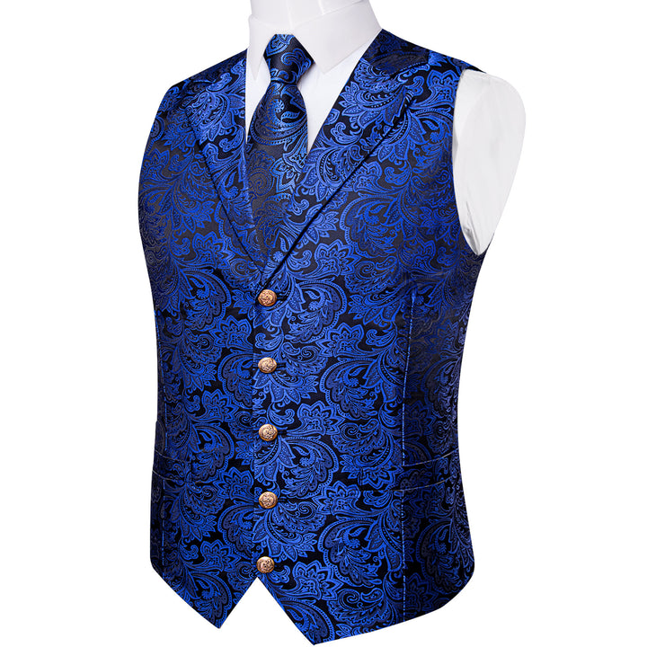 Ties2you Royal Blue Vest Collar Paisley Dress Waistcoat Tie Hanky Cufflinks Set