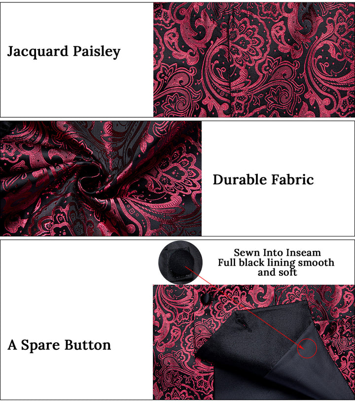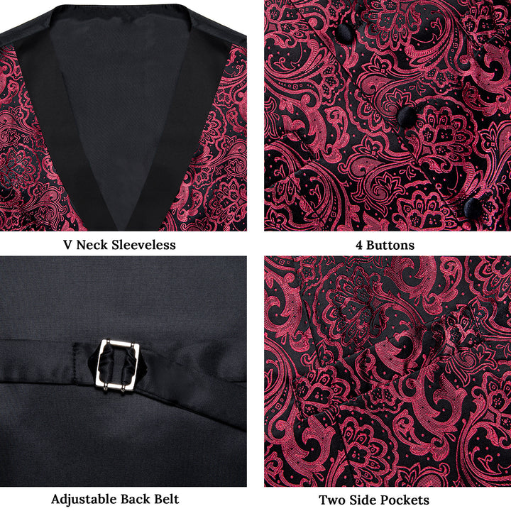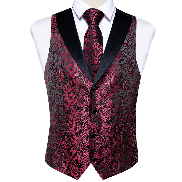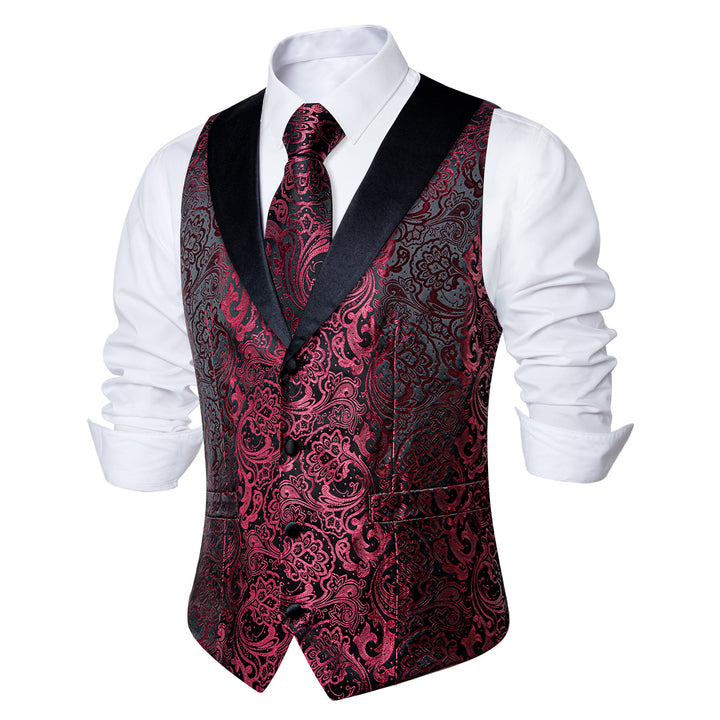 Ties2you Shawl Collar Vest Maroon Floral Wedding Dress Vest Tie Pocket Square Cufflinks Set