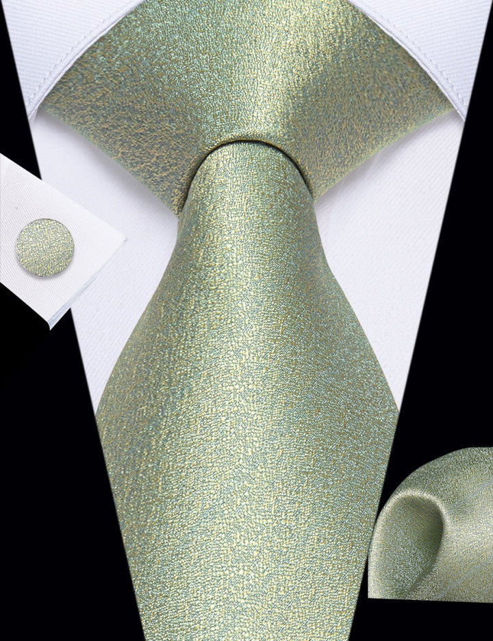 Ties2you Shining Light Avocado Green Solid Necktie Hanky Cufflinks Set