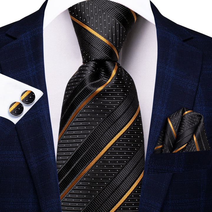 Ties2you Silk Black Necktie White Striped Business Tie Pocket Square Cufflinks Set
