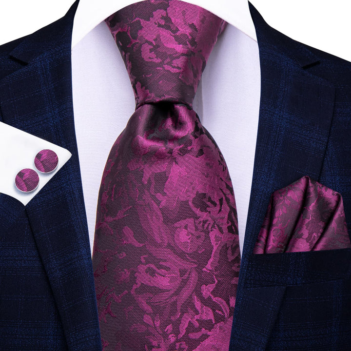 Ties2you Silk Necktie Dark Purple Floral Mens Work Dress Tie Set