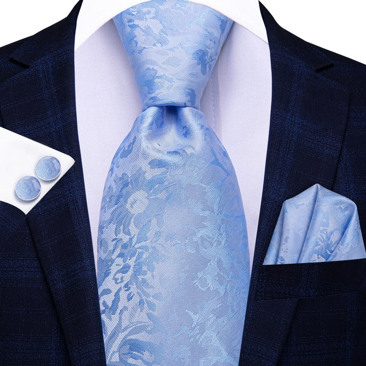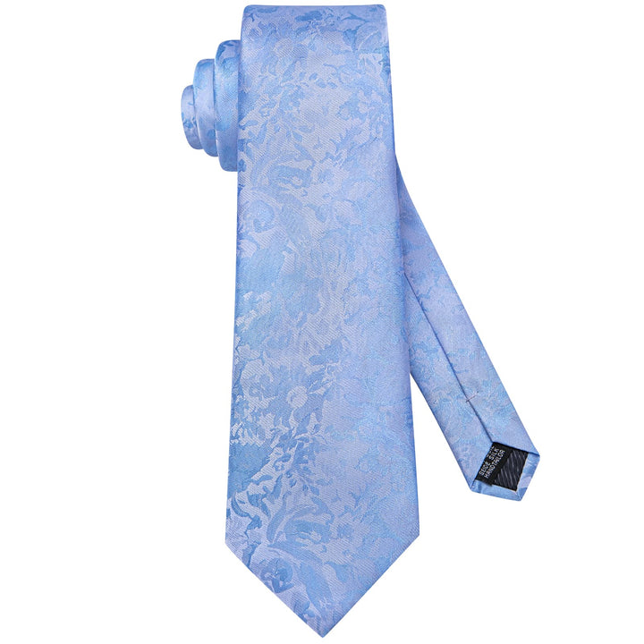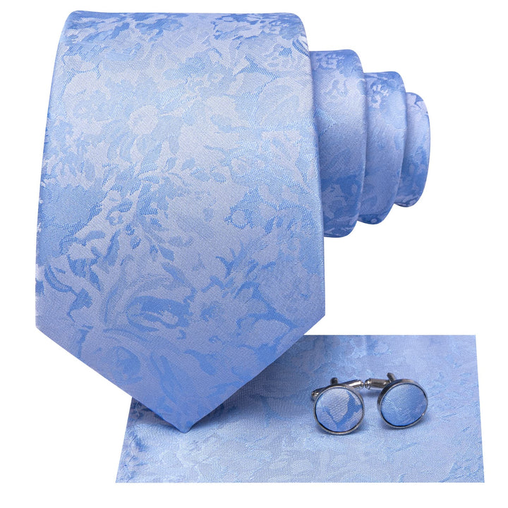 Ties2you Silk Necktie Sky Blue Floral Mens Dress Work Tie Set