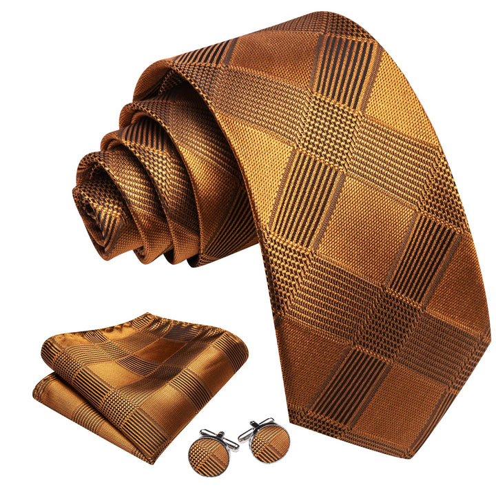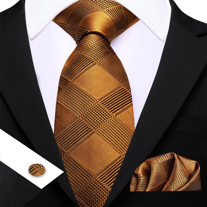 Ties2you Silk Tie Dijion Yellow Plaid Men's Tie Handkerchief Cufflinks Set