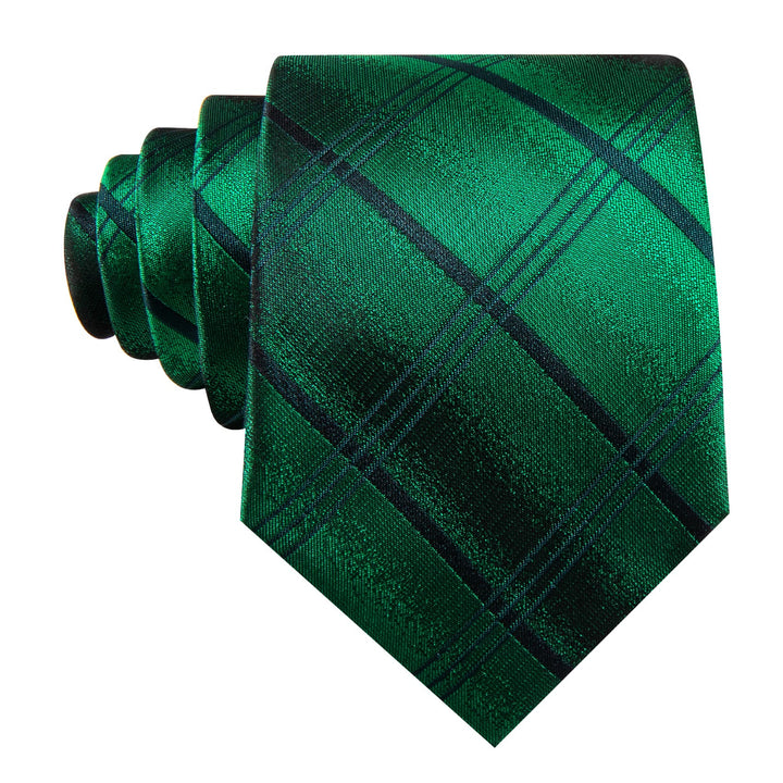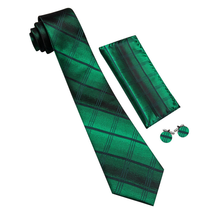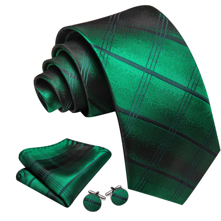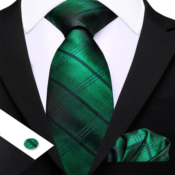 Ties2you Silk Tie Emerald Green Plaid Men's Tie Hanky Cufflinks Set