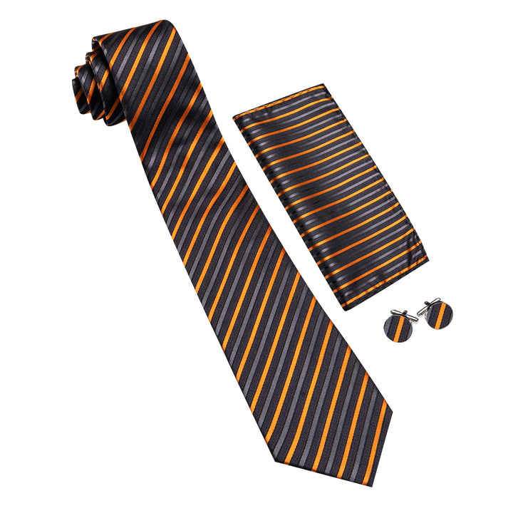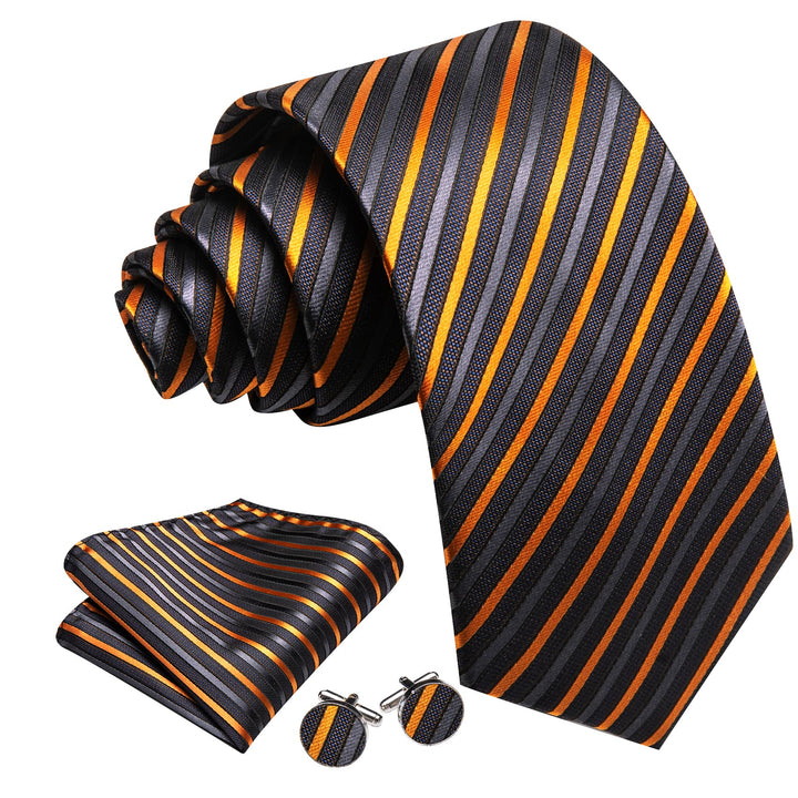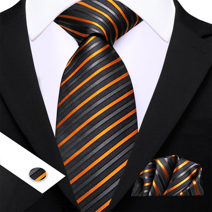 Ties2you Silk Tie Grey Gold Striped Mens Tie Hanky Cufflinks Set Business