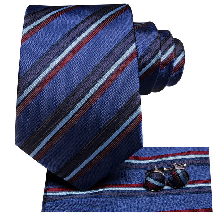 Ties2you Silk Tie Yale Blue Red Striped Mens Dress Tie Pocket Square Cufflinks Set for Formal