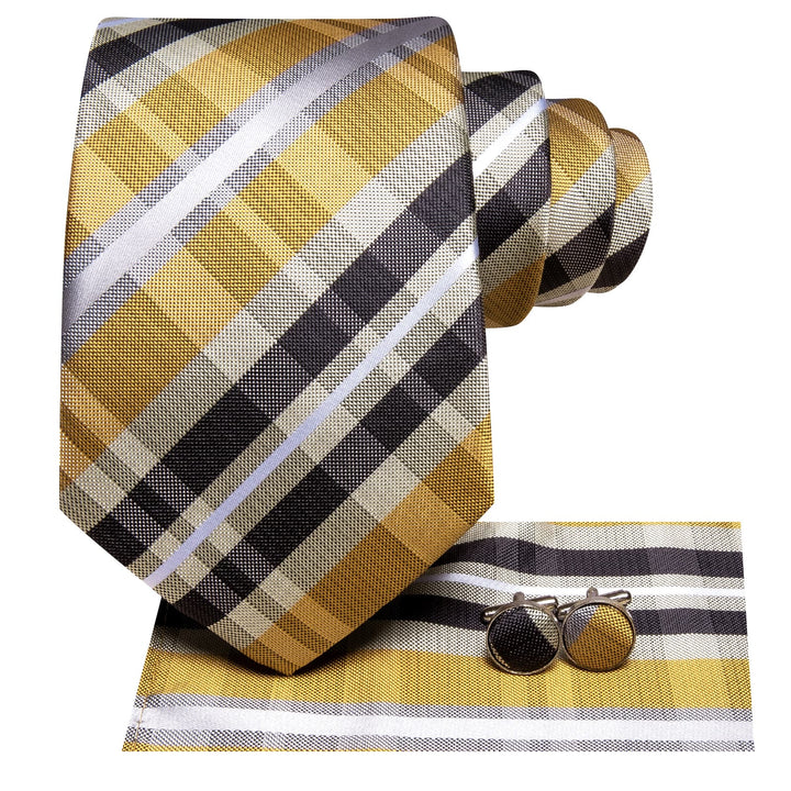 Ties2you Silk Tie Yellow Black Striped Mens Tuxedo Dress Tie Pocket Square Cufflinks Set