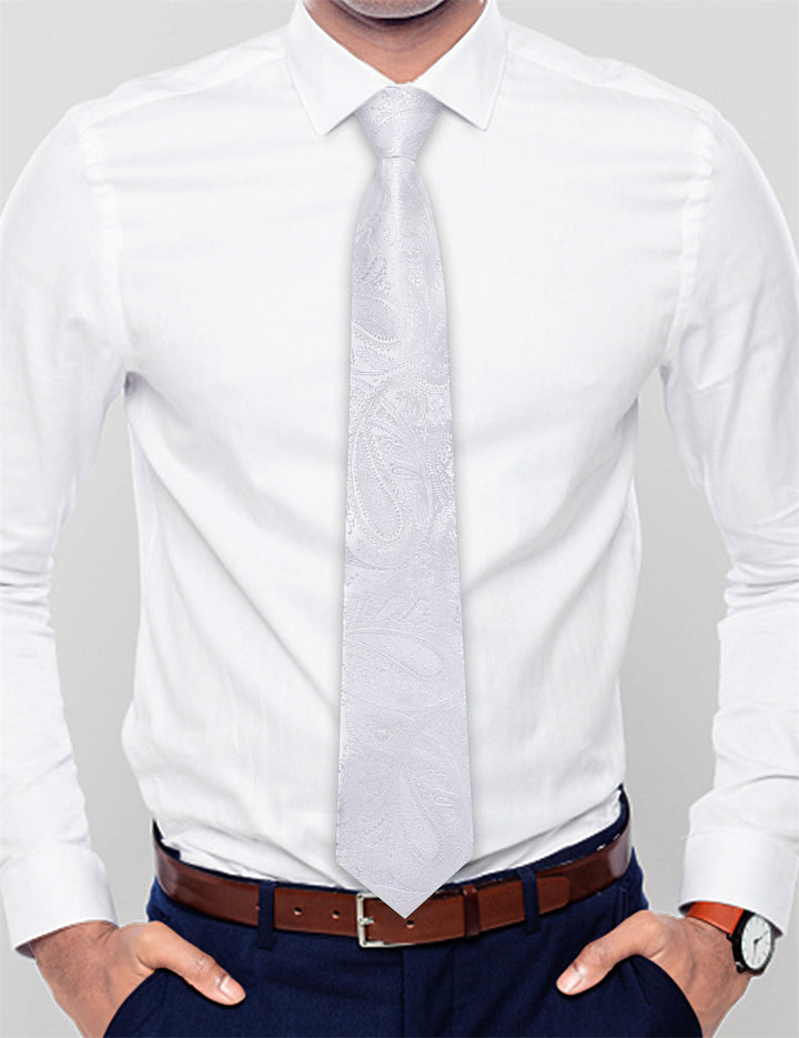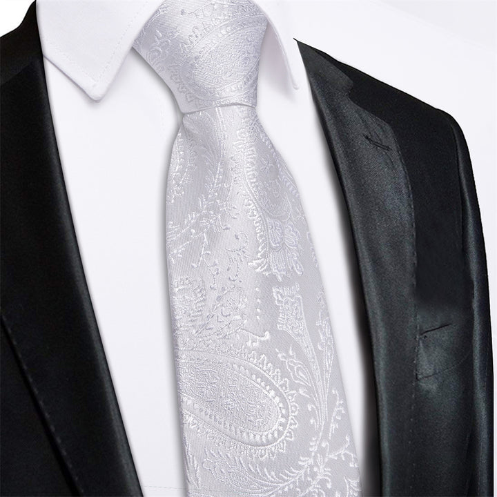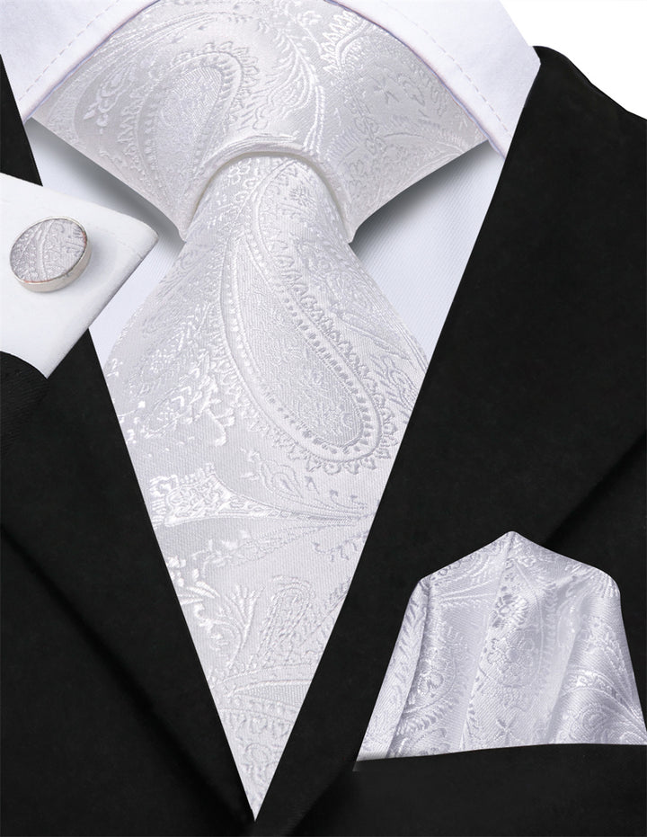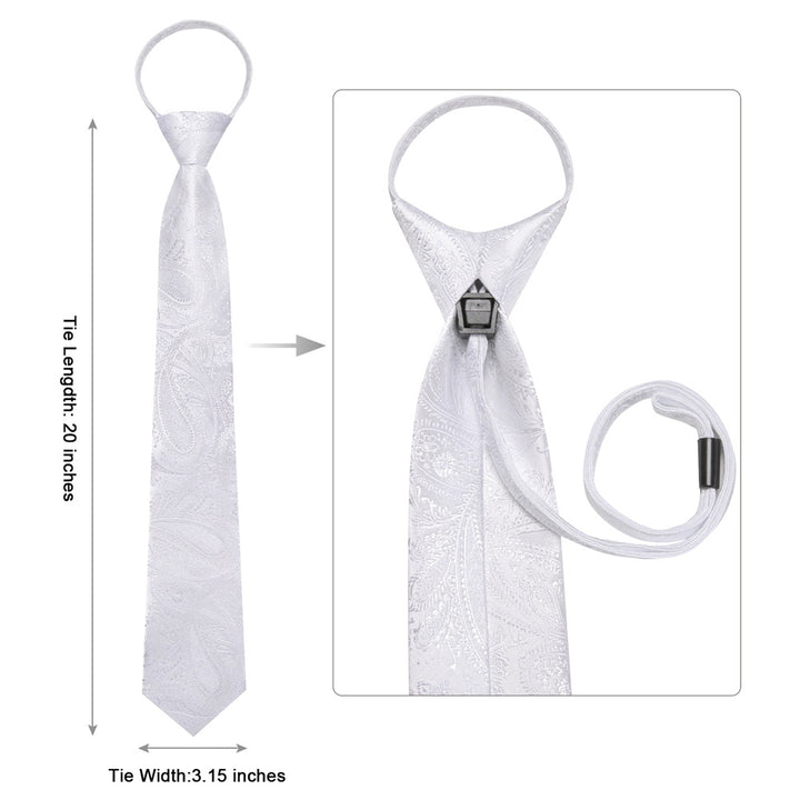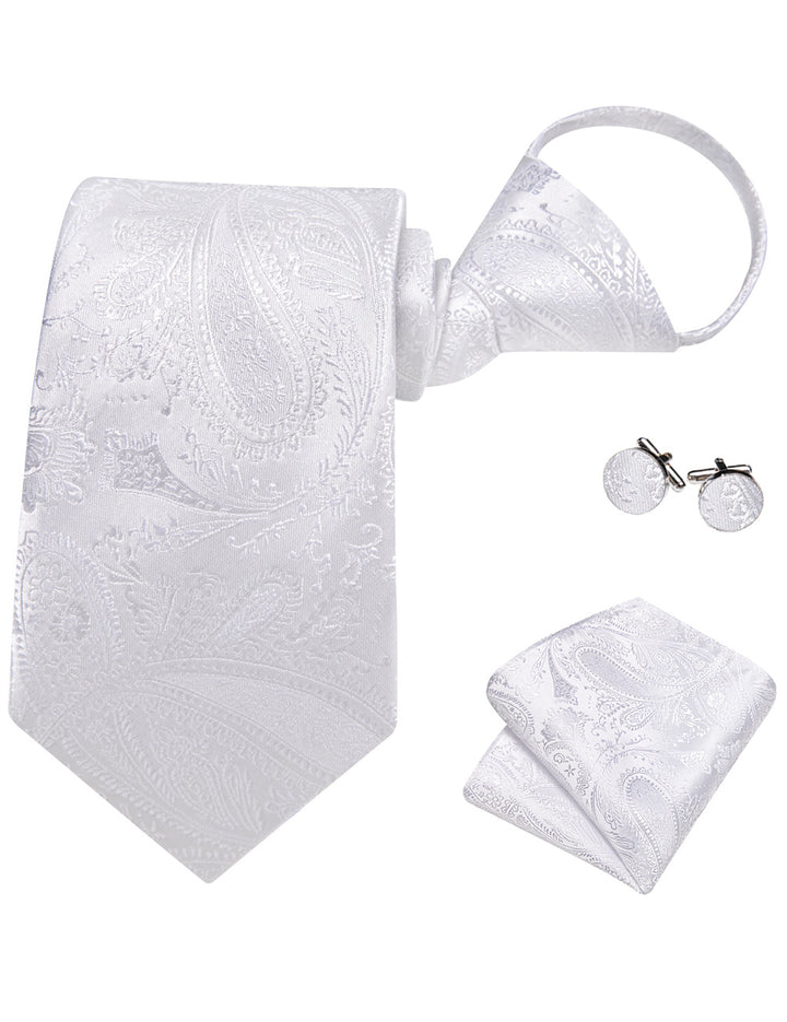 Ties2you Silver Paisley Lazy Mens Easy-pull Silk Tie Pocket Square Cufflinks Set
