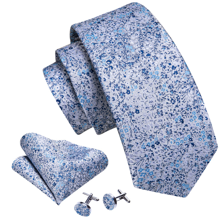 Ties2you Sky Blue Floral Necktie Mens Silk Party Suit Tie Pocket Square Cufflinks Set