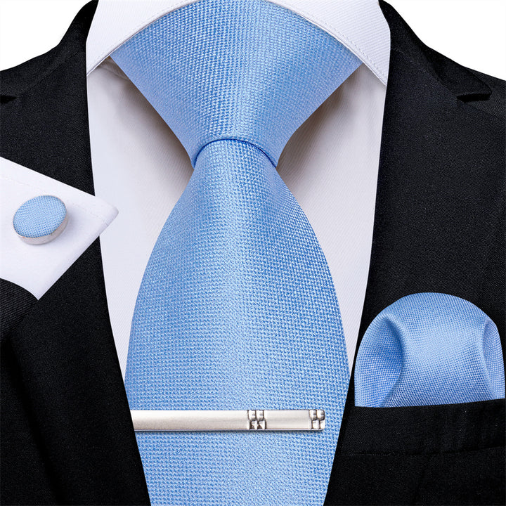 Ties2you Sky Blue Solid Men's Tie Hanky Cufflinks Tie Clip Set