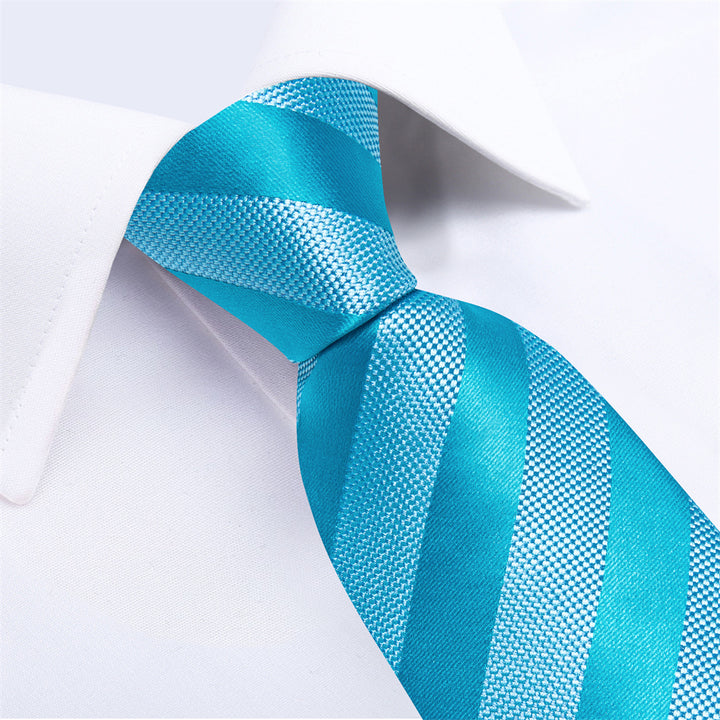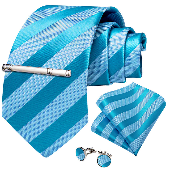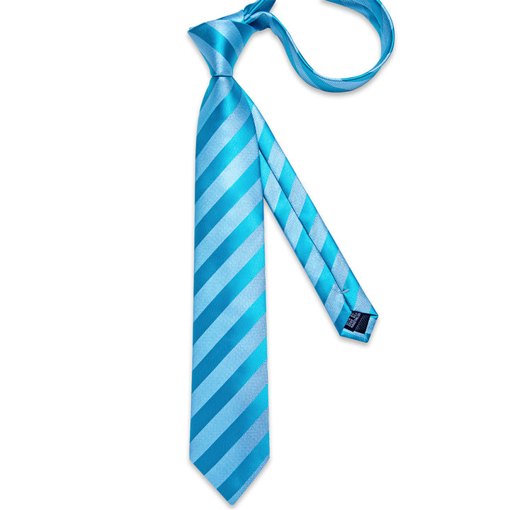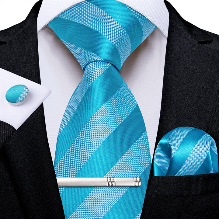 Ties2you Sky Blue Striped Men's Tie Pocket Square Cufflinks Set