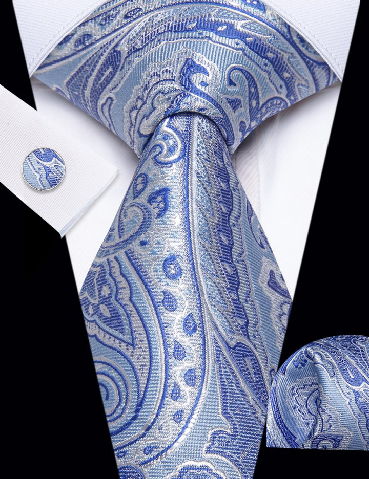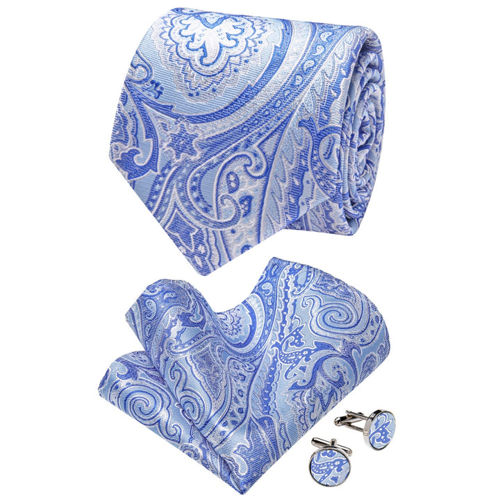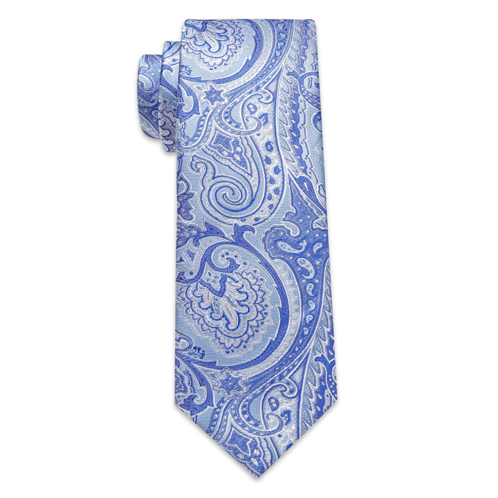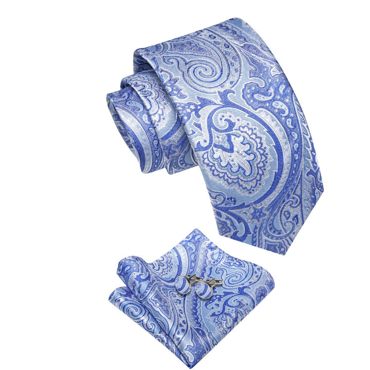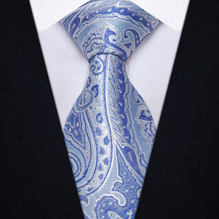 Ties2you Sky Blue Tie Paisley Wedding Necktie Hanky Cufflinks Set