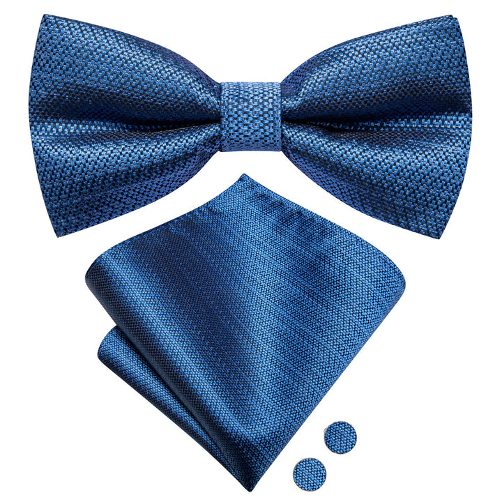 Ties2you Steel Blue Pre-tied Bowtie Business Geometric Bow Tie Handkerchief Cufflinks Set