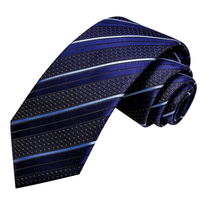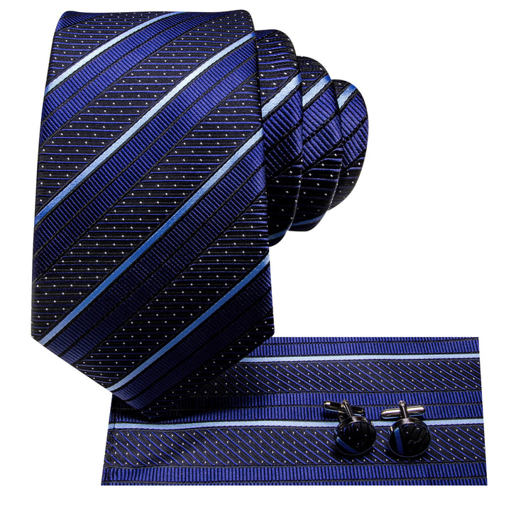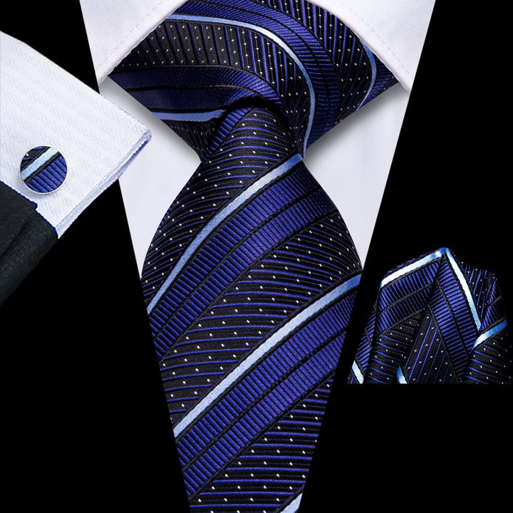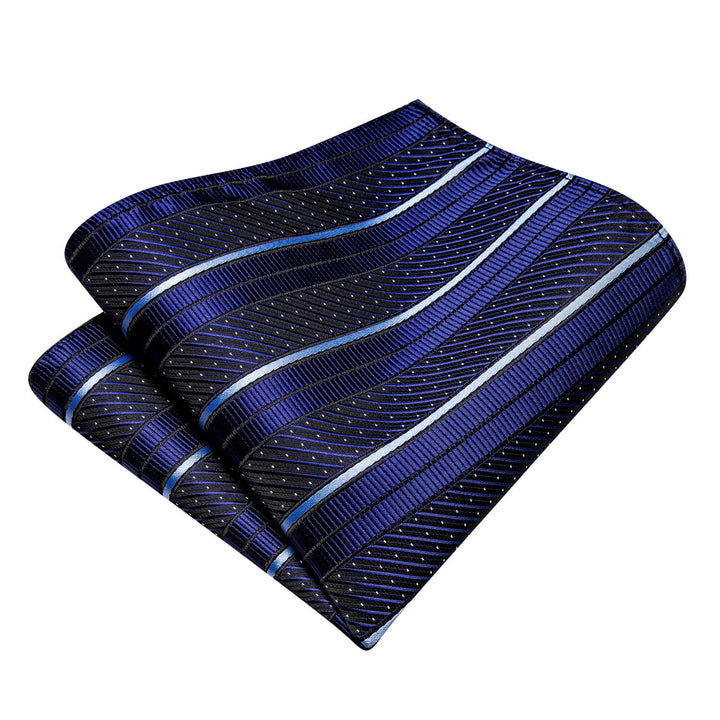 Ties2you Striped Tie Navy Blue White Silk Men's Tie Hanky Cufflinks Set