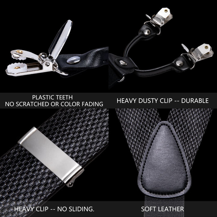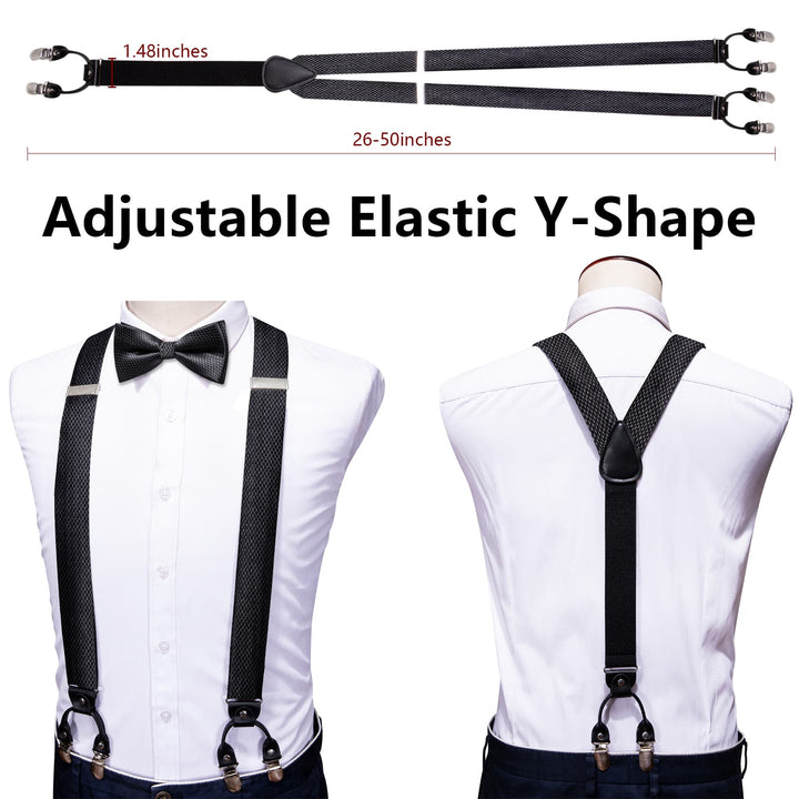 Suspenders for Men Classic Black Geometric Y Back Brace Clip-on Suspender Bow Tie Set