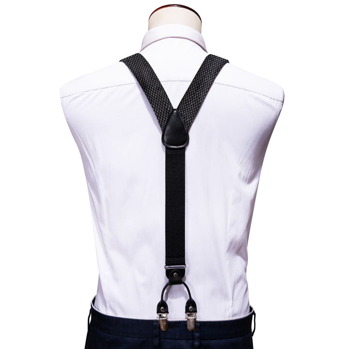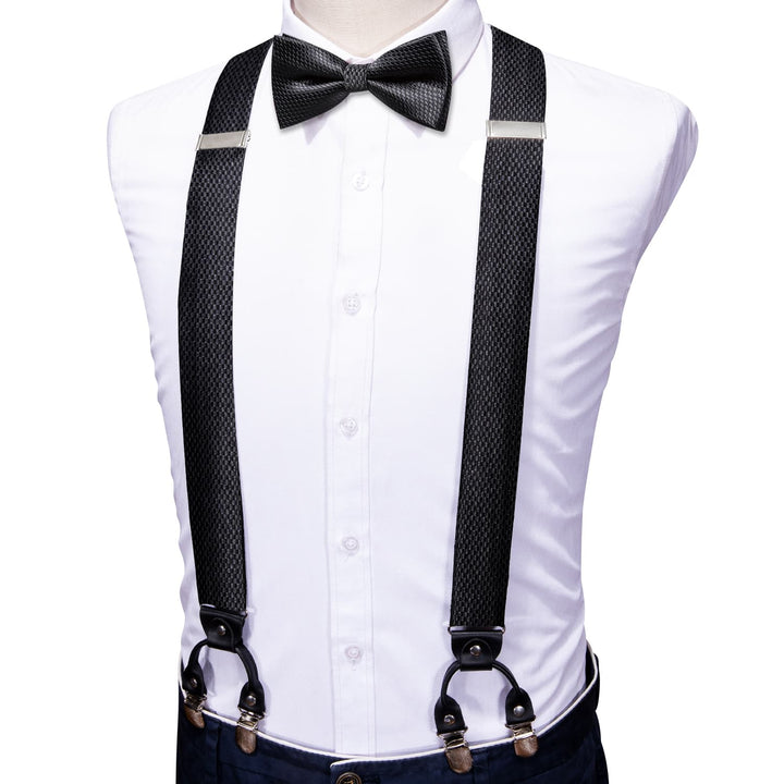 Ties2you Suspenders for Men Classic Black Geometric Y Back Brace Clip-on Suspender Bow Tie Set