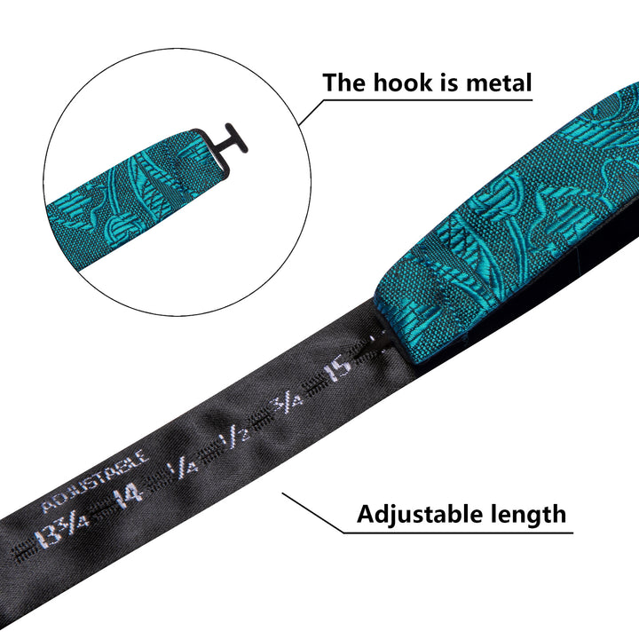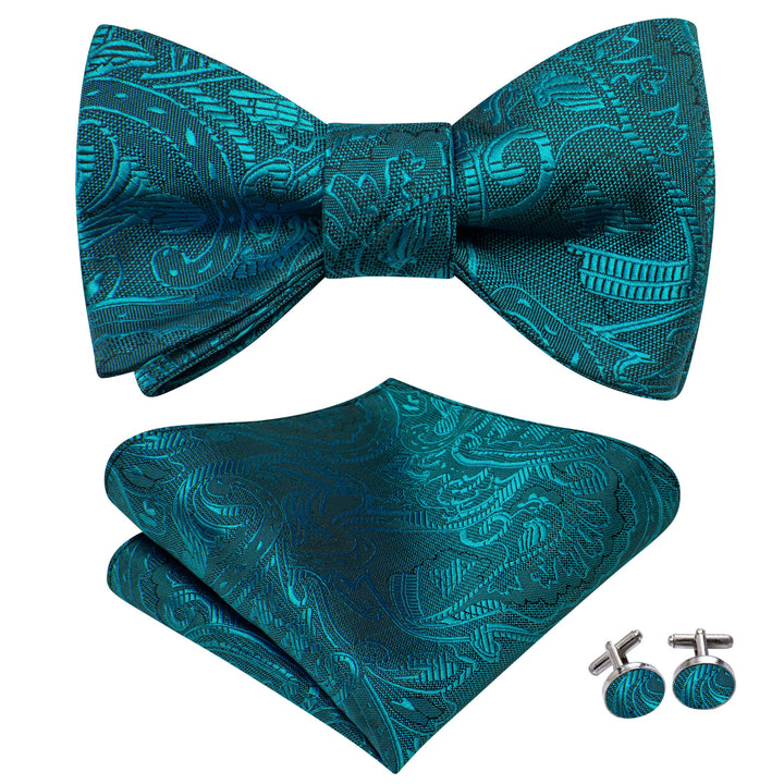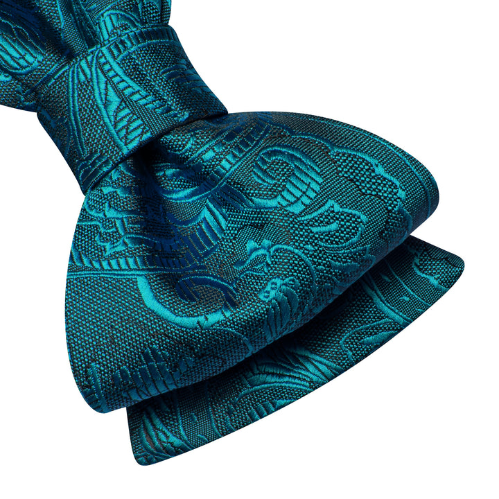 Ties2you Teal Blue Floral Bowtie Pre-tied Party Bow Tie Handkerchief Cufflinks Set