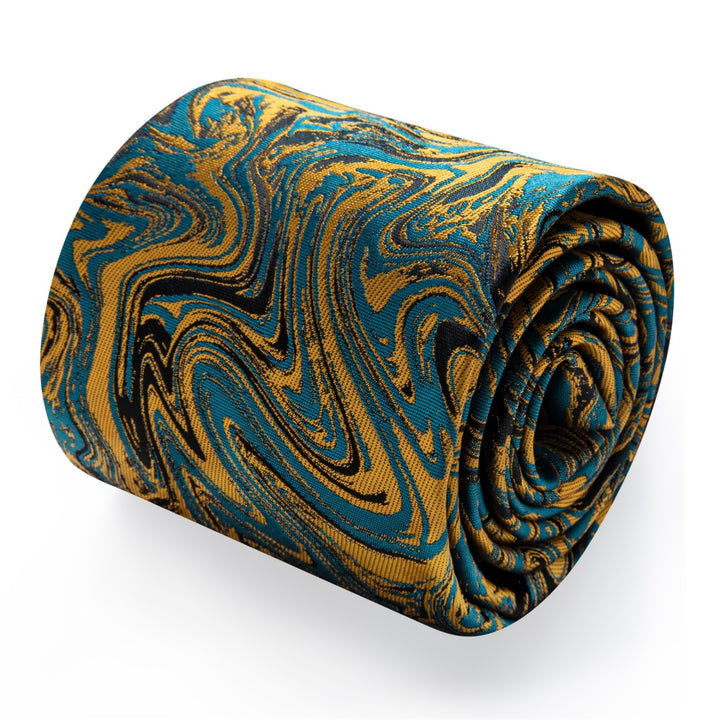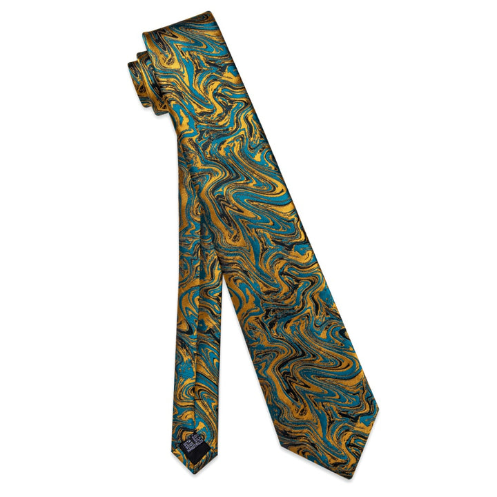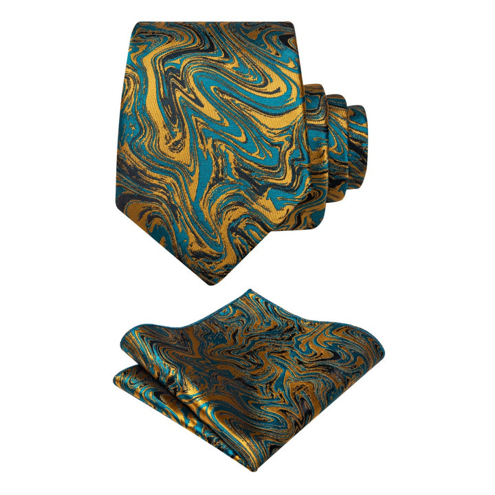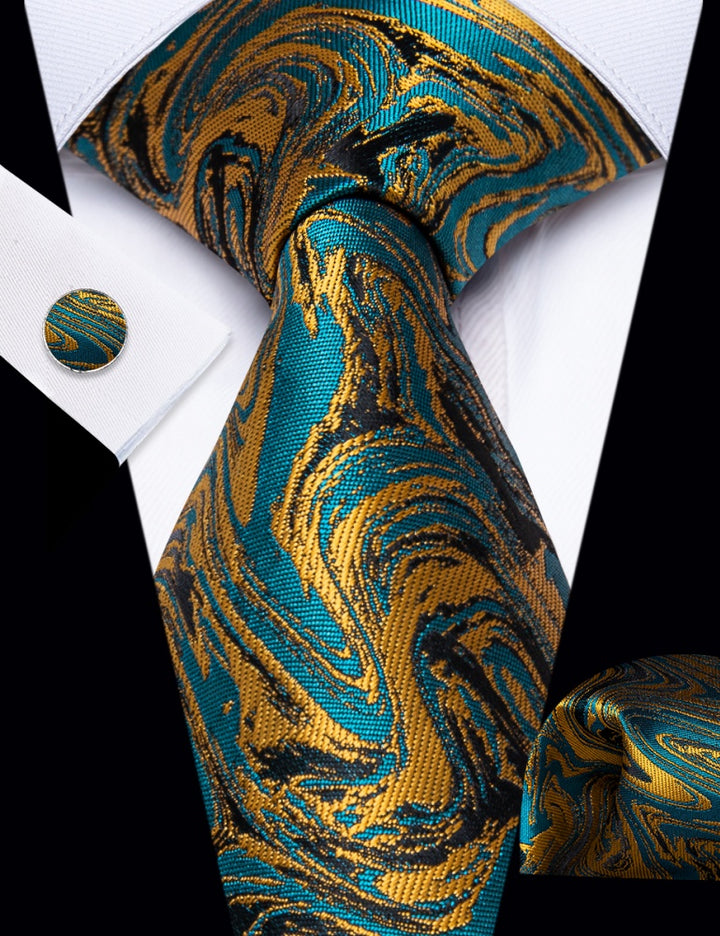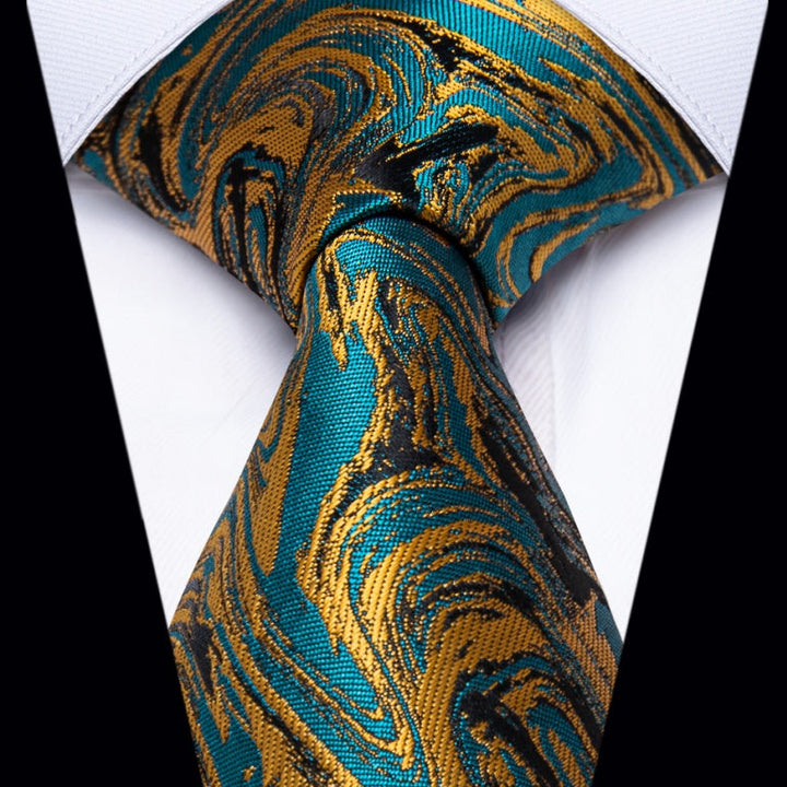 Ties2you Teal Blue Gold Necktie Novelty Jacquard Men's Dinner Tie Set