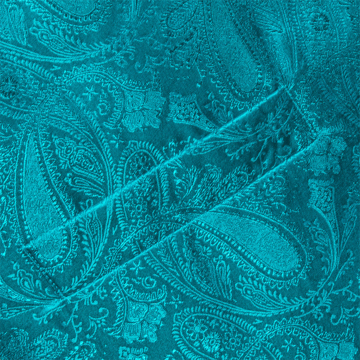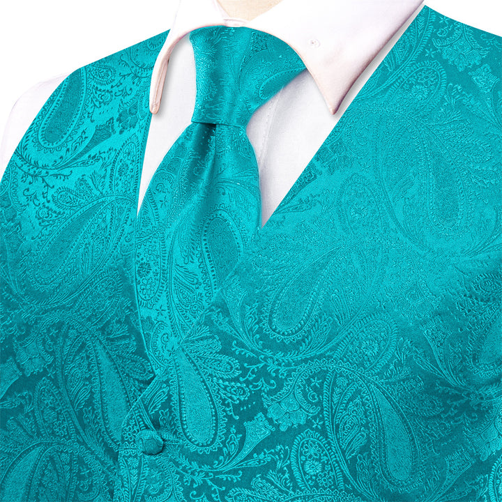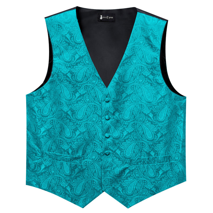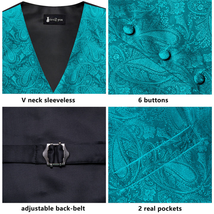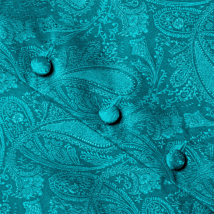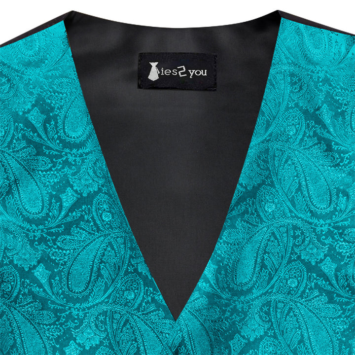 Ties2you Teal Blue Paisley Pattern V-Neck Silk Vest Necktie Set