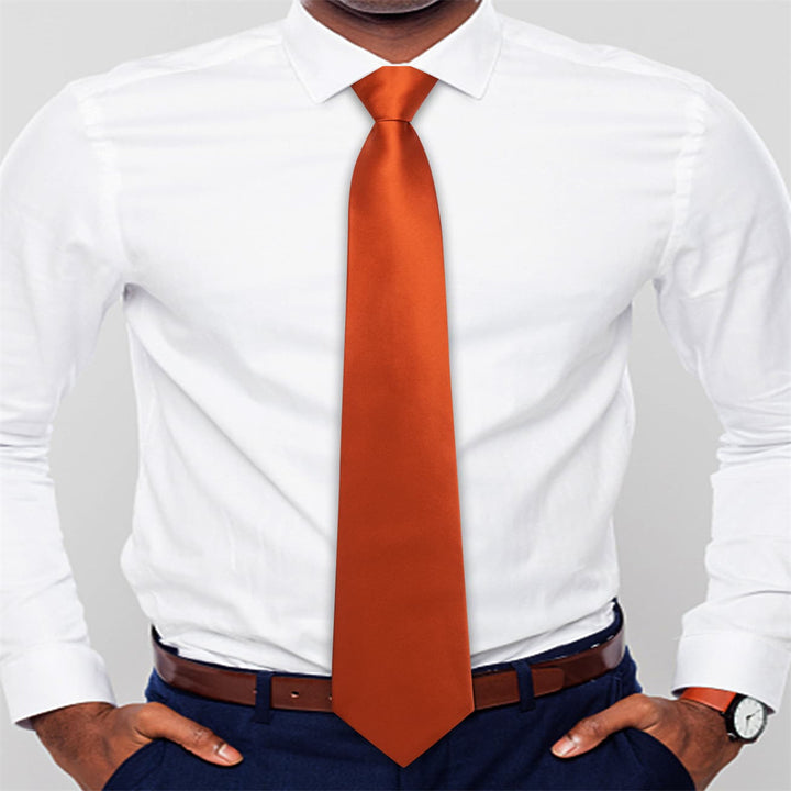 high quality deep orange solid cheap mens ties pocket square cufflinks set