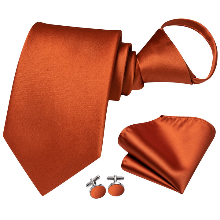 Ties2you Tie Top Fire Orange Solid Silk Lazy Mens Easy-pull Work Dresses Tie Set