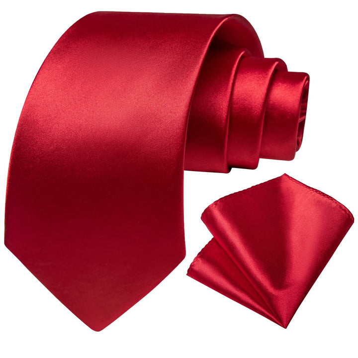 Ties2you Tie Top Shining Solid Silk Mens Work Dresses Red Tie Handkerchief Cufflinks Set
