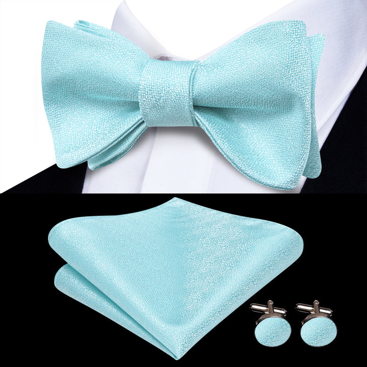 Ties2you Turquoise Bowtie Pre-tied Solid Tuxedo Bow Tie Pocket Square Cufflinks Set