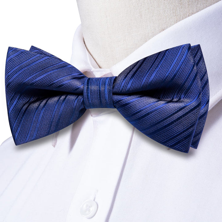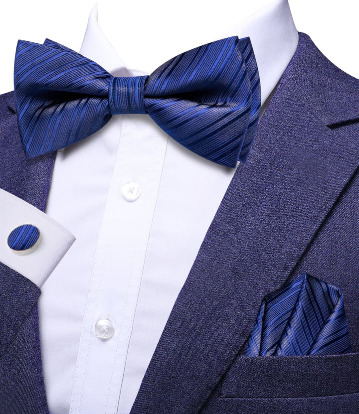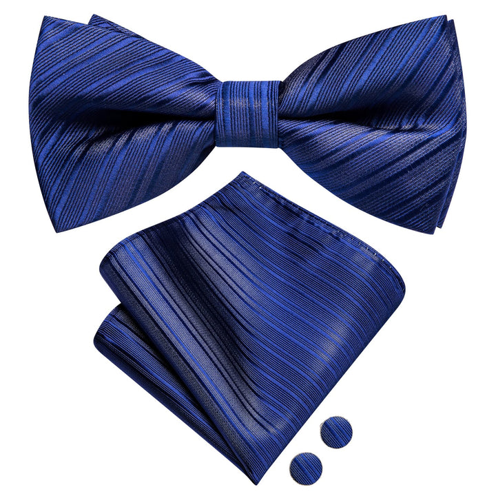 Ties2you Blue Striped Bowtie Pre-tied Formal Bow Tie Pocket Square Cufflinks Set