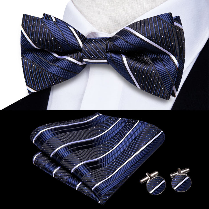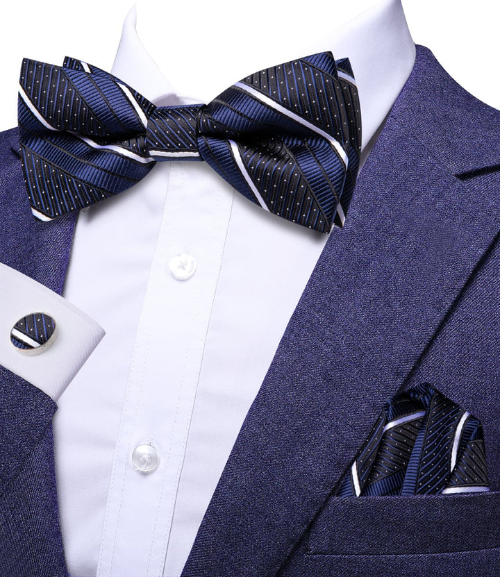 Ties2you Men's Striped Tuxedo Bow Tie Pre-tied Navy Blue Formal Silk Bowtie Set