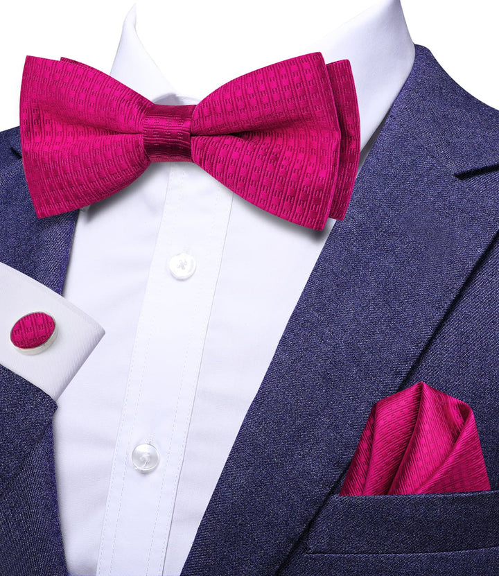 Ties2you Fuchsia Pink Bow Tie Striped Pre-tied Silk Bowtie Handkerchief Cufflinks Set