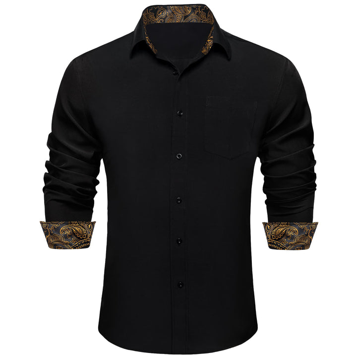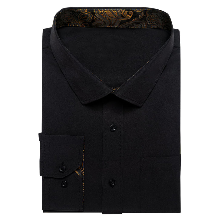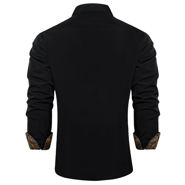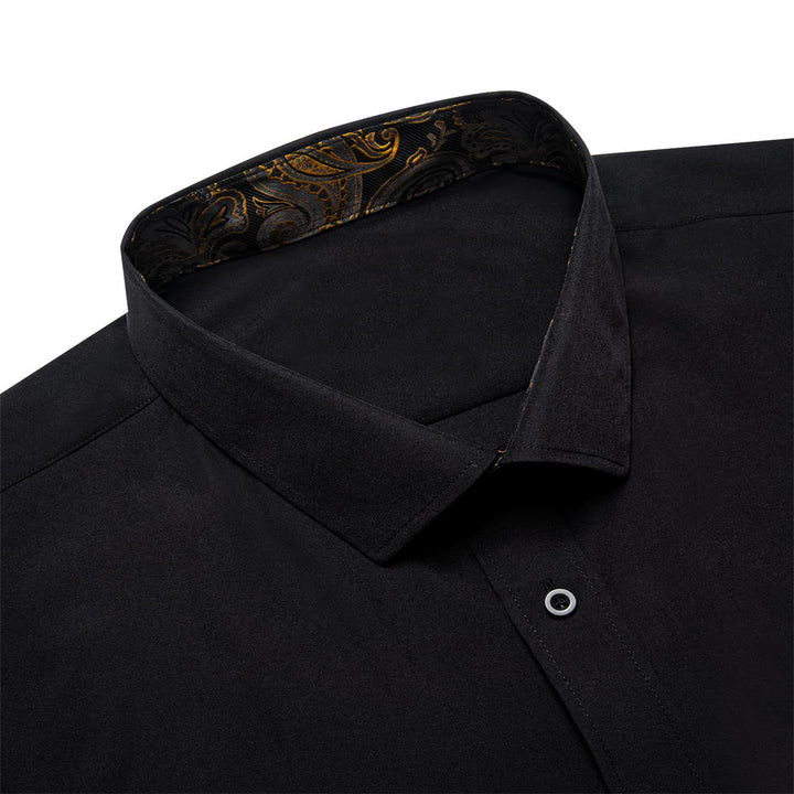Ties2you Tuxedo Shirt Black Solid Splicing Gold Paisley Silk Mens Dress Shirt