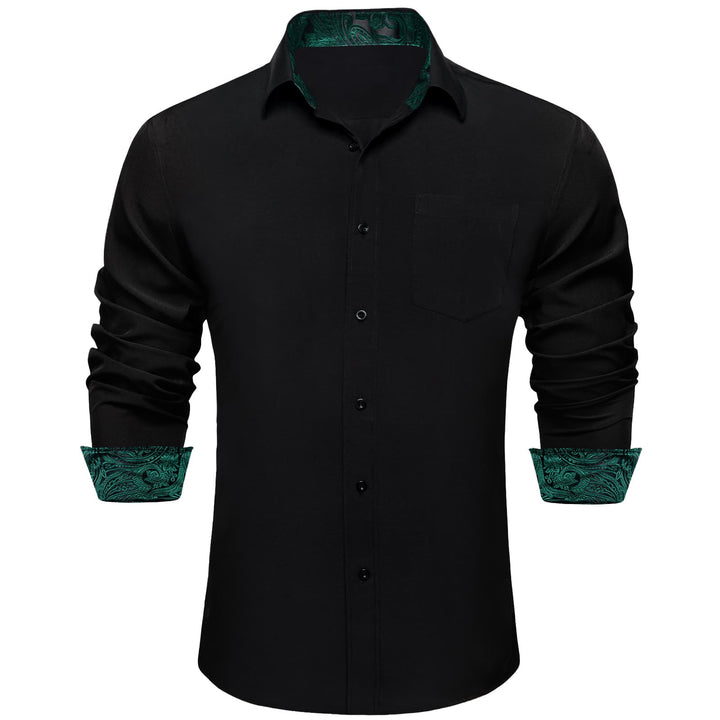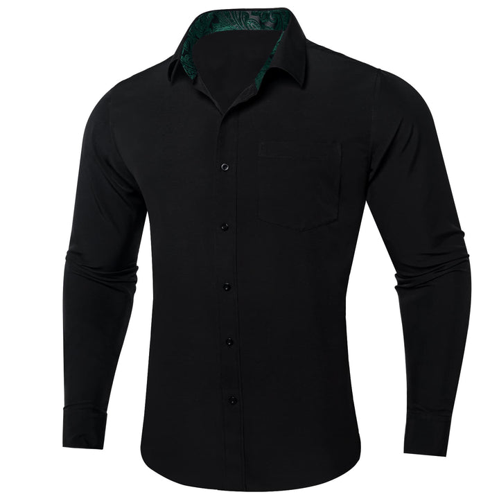 Ties2you Tuxedo Shirt Black Solid Splicing Green Paisley Silk Mens Dress Shirt