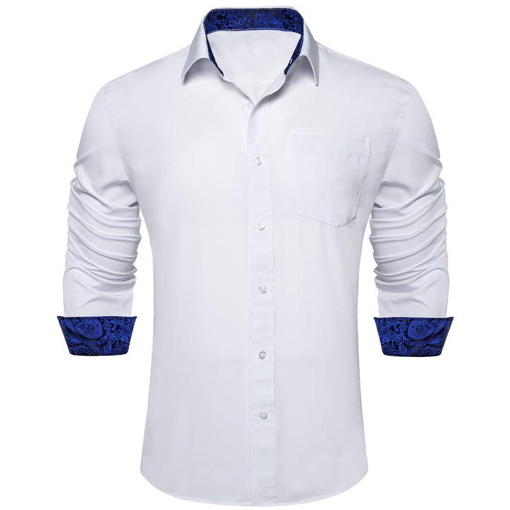 Ties2you Tuxedo Shirt White Solid Splicing Navy Paisley Silk Mens Dress Shirt